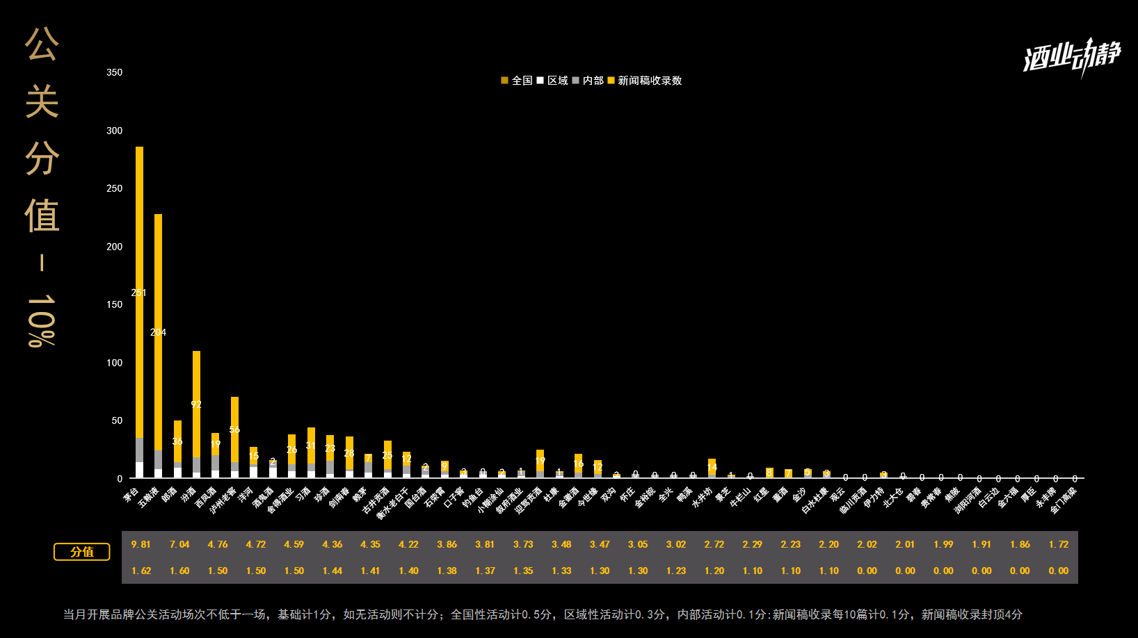 九月中国白酒品牌曝光、公关排名