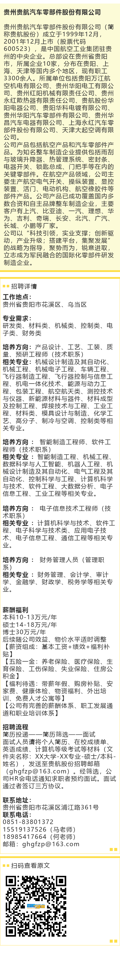 【央企】贵州贵航汽车零部件股份有限公司招聘!年薪10-30万元+各类福利补贴!