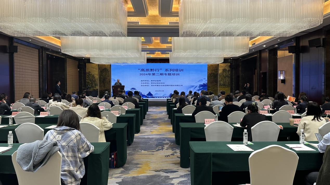 3月27日,在贵州证监局指导下,由贵州证券业协会(以下简称“协会”)主办,深圳怀新企业投资顾问股份有限公司(以下简称“怀新投资”)协办的“高质黔行”系列培训2024第二期上市公司业务专题培训在筑成功举办,辖区30家上市公司董事会秘书、证券事务代表及法务等相关人员参加培训。