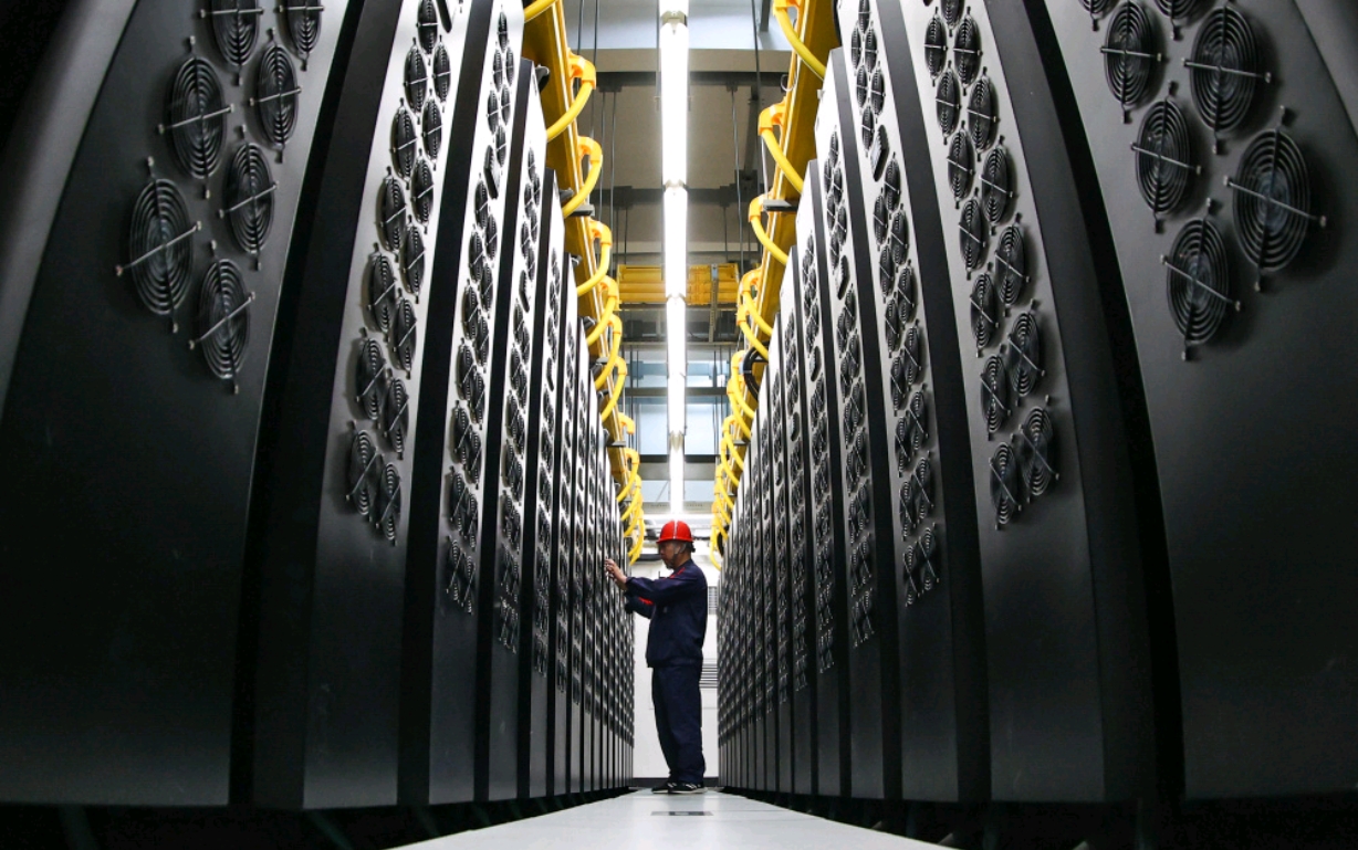 风噪声不绝于耳,指示灯不停闪烁,贵阳贵安新区贵安超级计算中心内,一台台服务器高速运转,算力源源不断输往全国各地。