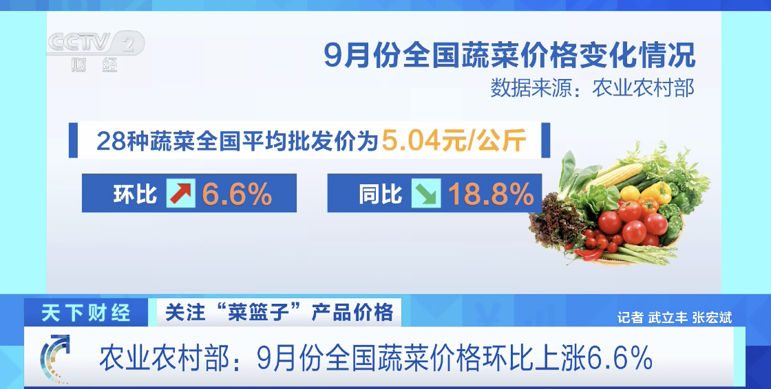 农业农村部:9月份全国蔬菜价格环比上涨6.6%
