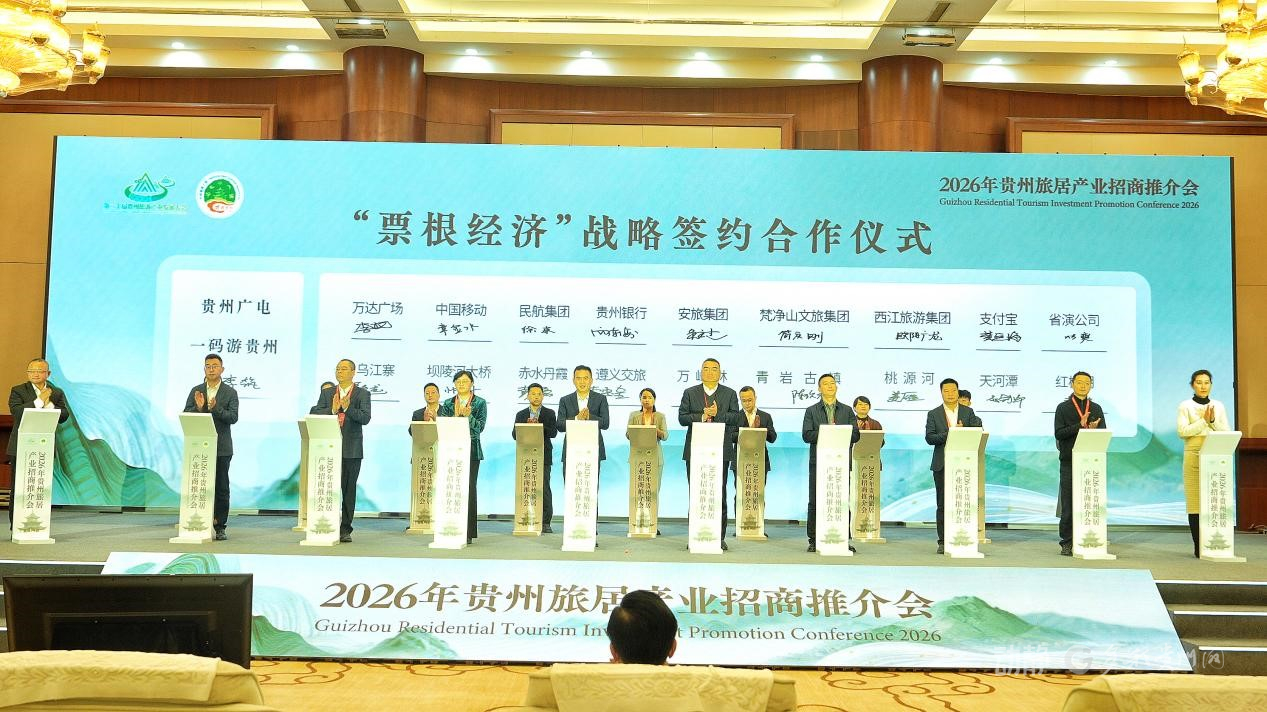 3月31日,2026年贵州旅居产业招商推介会在贵州省国际会议中心贵州厅举办。会上,省级智慧文旅官方平台“一码游贵州”与贵州银行、民航集团、中国移动、万达广场、中石油、中石化、安旅集团、梵净山文旅集团、西江旅游集团、贵厨餐饮等30多家行业代表企业集中签约,正式组建“贵州票根经济联盟”,以跨界联动、全域协同之势,推动贵州文旅产业迈入融合发展、提质增效的全新阶段。