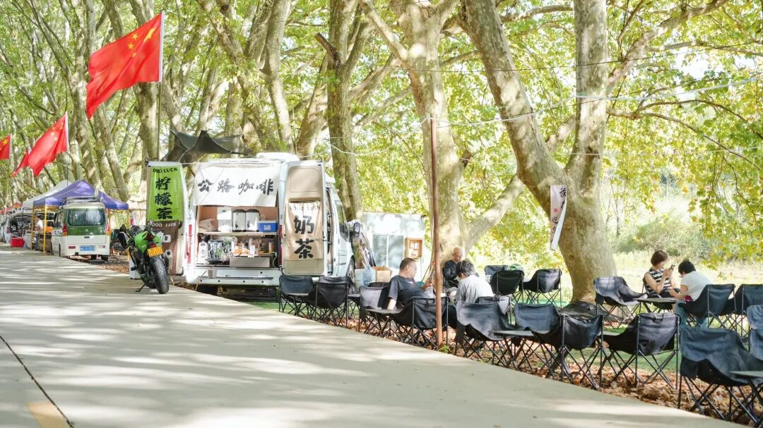 近2公里梧桐大道在秋日里被铺就成一条“黄金隧道”,金黄树叶与斑驳红砖墙、老旧厂房构成复古画卷。走在这条被树影温柔覆盖的路上,可以打卡后备箱咖啡,也可以自带装备在落叶间野餐。