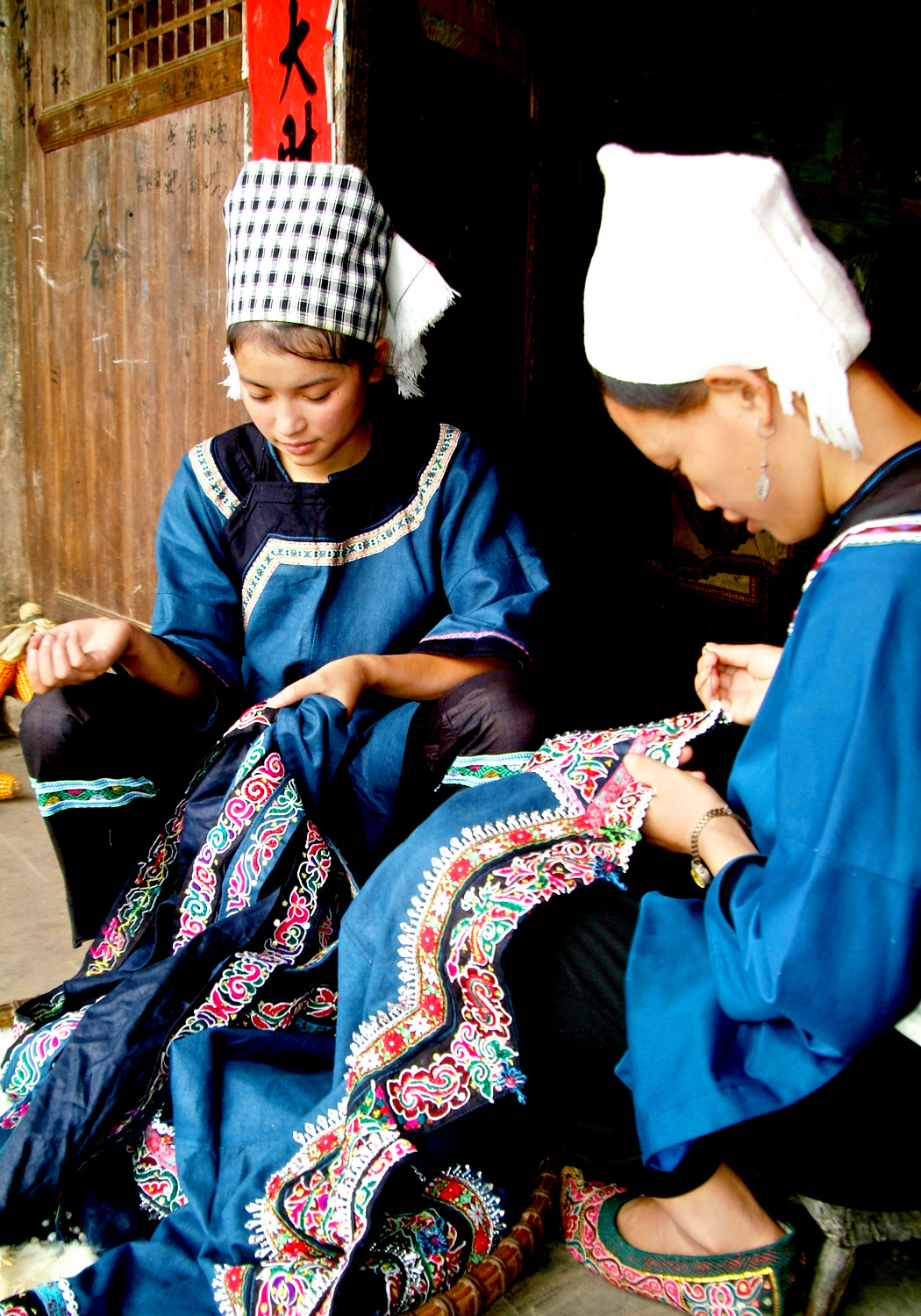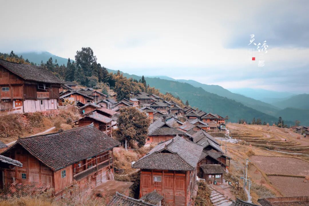 秋日的怎雷村,云雾环绕、峰峦延绵,民居依山而建,层层梯田由山脚逐级而上,巧妙地组成了一幅“,入村不见山、进山不见寨”的山野村居图。怎雷村现有200余栋保存完整的传统“干栏式”民居建筑和100余栋传统禾仓建筑,秋日午后,常有水族老人捻线刺绣,阳光透过窗棂洒在绣品上,蝴蝶、葫芦等图案仿佛要从布面中跃出。怎雷村刺绣以水族马尾绣为核心,被誉为“刺绣中的活化石”。