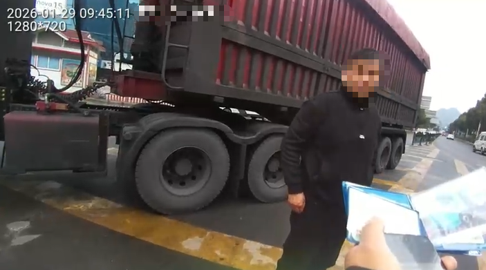 近日,普定交警在安顺市普定县夜郎湖路星博国际路段开展交通违法查处工作。9时44分许,付某驾驶的贵F06****号重型半挂牵引车被民警拦下进行检查。