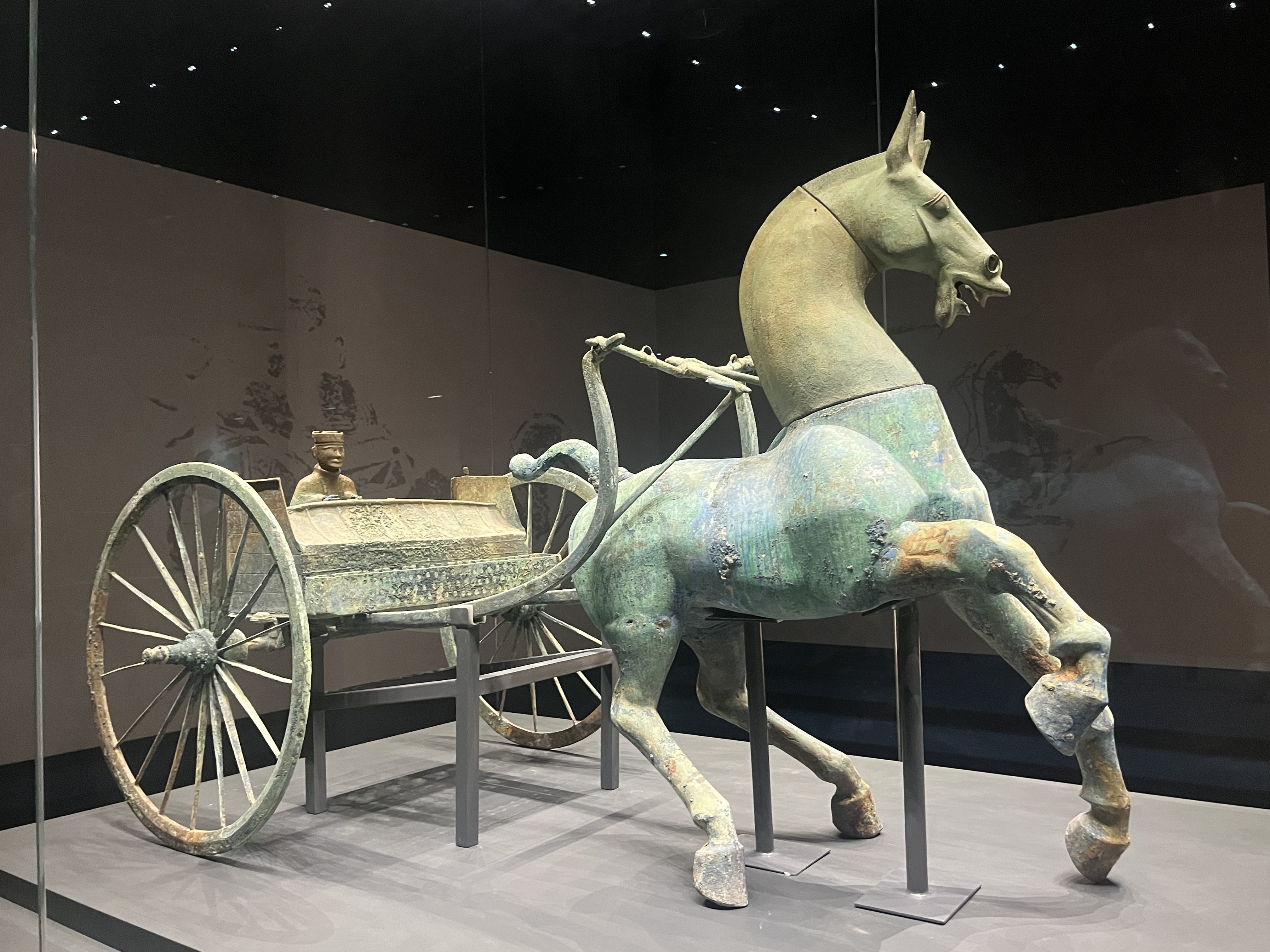 通过以上对比,兰家坡铜车马无愧“中国汉代第一车”,交乐铜车马则稳居“千年老二”。本次展览是贵马入川,期待不久的将来,川马入贵,大哥来看看二弟,在黔西南州博物馆联袂首秀伯歌季舞、双马齐奔。