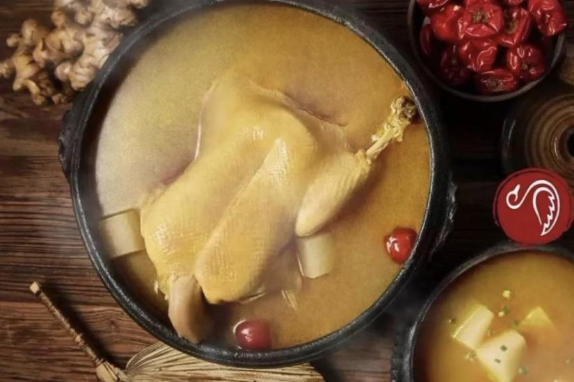 慢炖老鸭汤,汤色金黄,鸭肉炖得脱骨入味,喝完汤再涮菜,温润滋补正适合运动后的你。