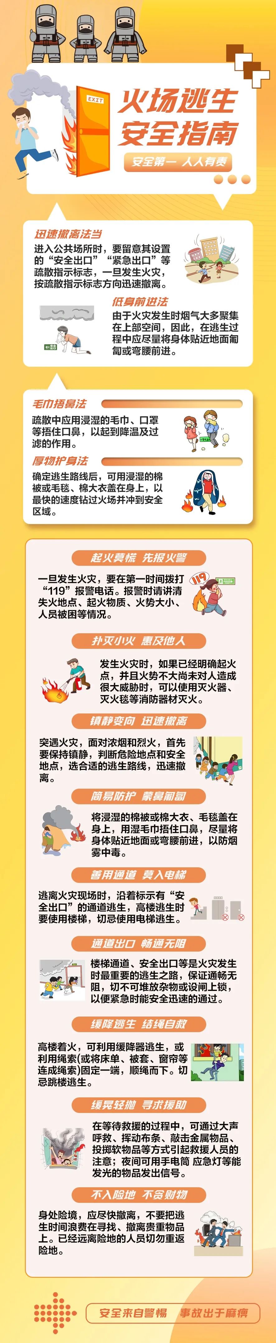 群众的警惕性与行动力往往是火灾防控的第一道关卡。掌握正确的逃生知识,能在关键时刻为自己和他人的生命安全增添一份保障。