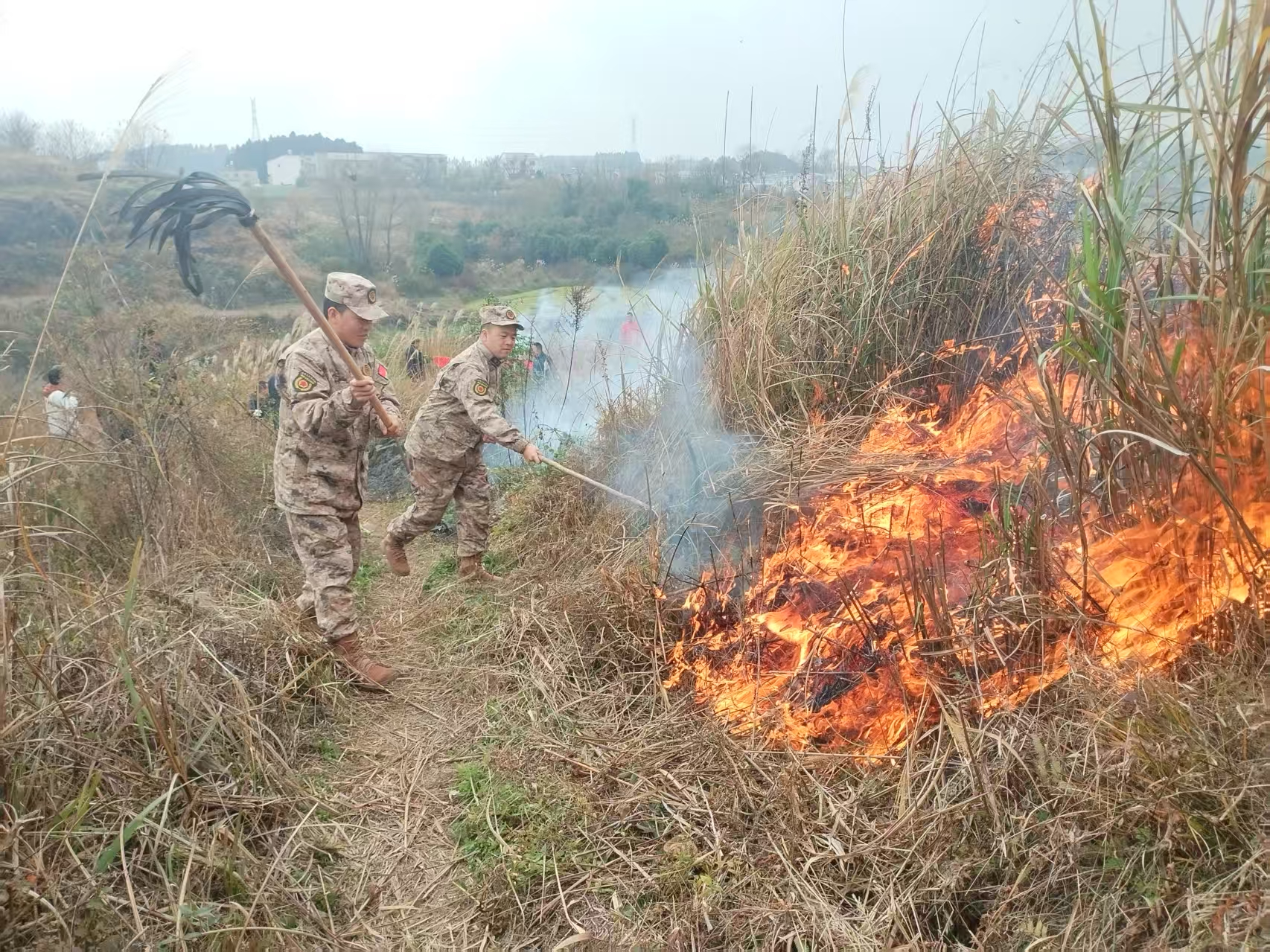 为扎实做好冬季森林防火工作,全面提升民兵队伍应急响应与火灾处置能力,近日,花溪区麦坪镇武装部在辖区附近荒坡地组织基干民兵开展森林防火实战化演练,以实战标准锤炼应急本领,全力筑牢冬季森林“防火墙”。