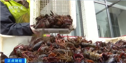 除了满足本地市场,鲜活小龙虾还通过物流端上了更多外地人的团年宴。在潜江市最大的小龙虾交易中心,工人们正将打包好的小龙虾运上大货车,发往全国各地。