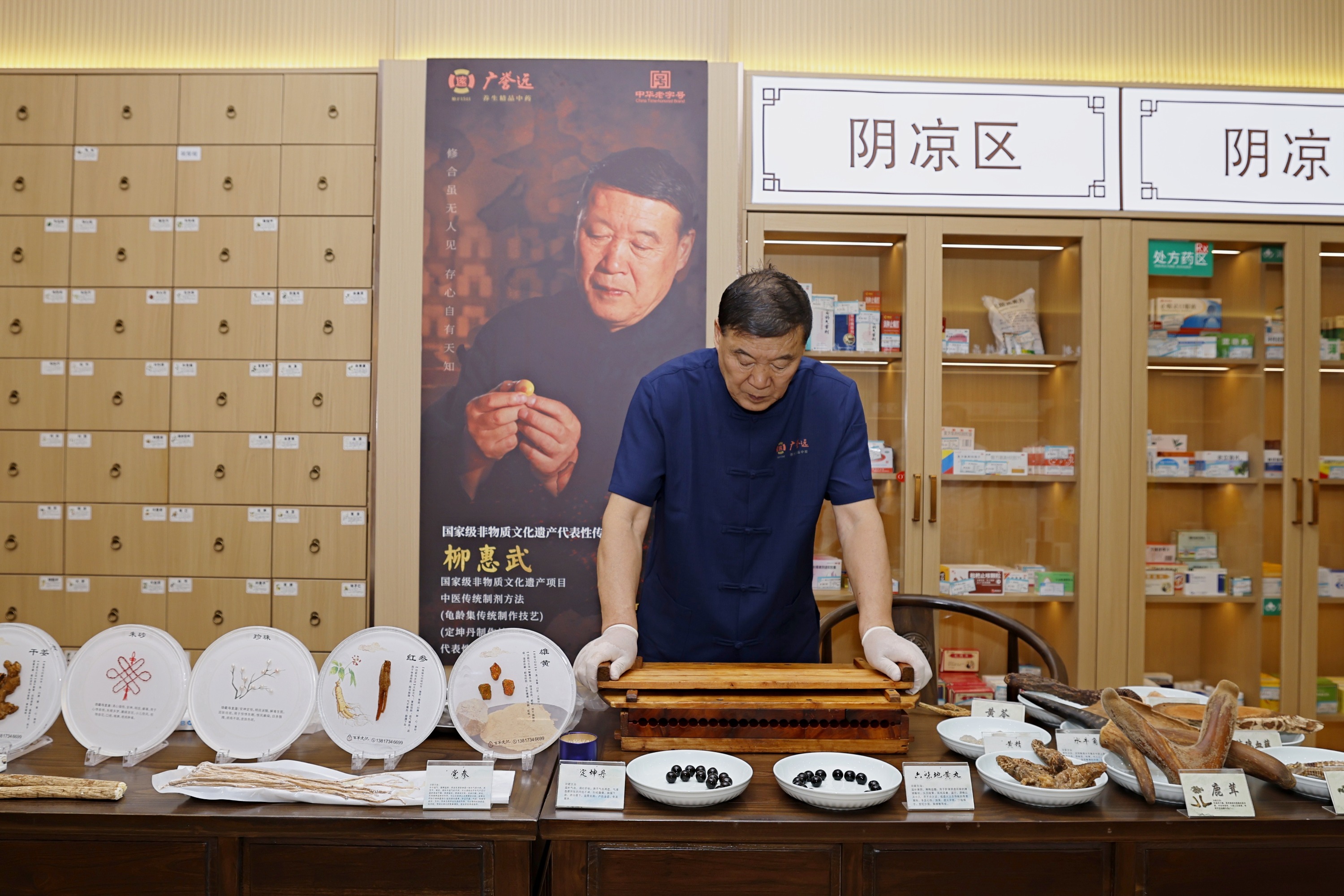 开业当天,国家级非遗传承人柳惠武受邀助阵,现场展示揉团、搓条、搓丸等技艺,每一步精准把控,观众既可近距离观察,还可以品尝定坤丹、六味地黄丸。