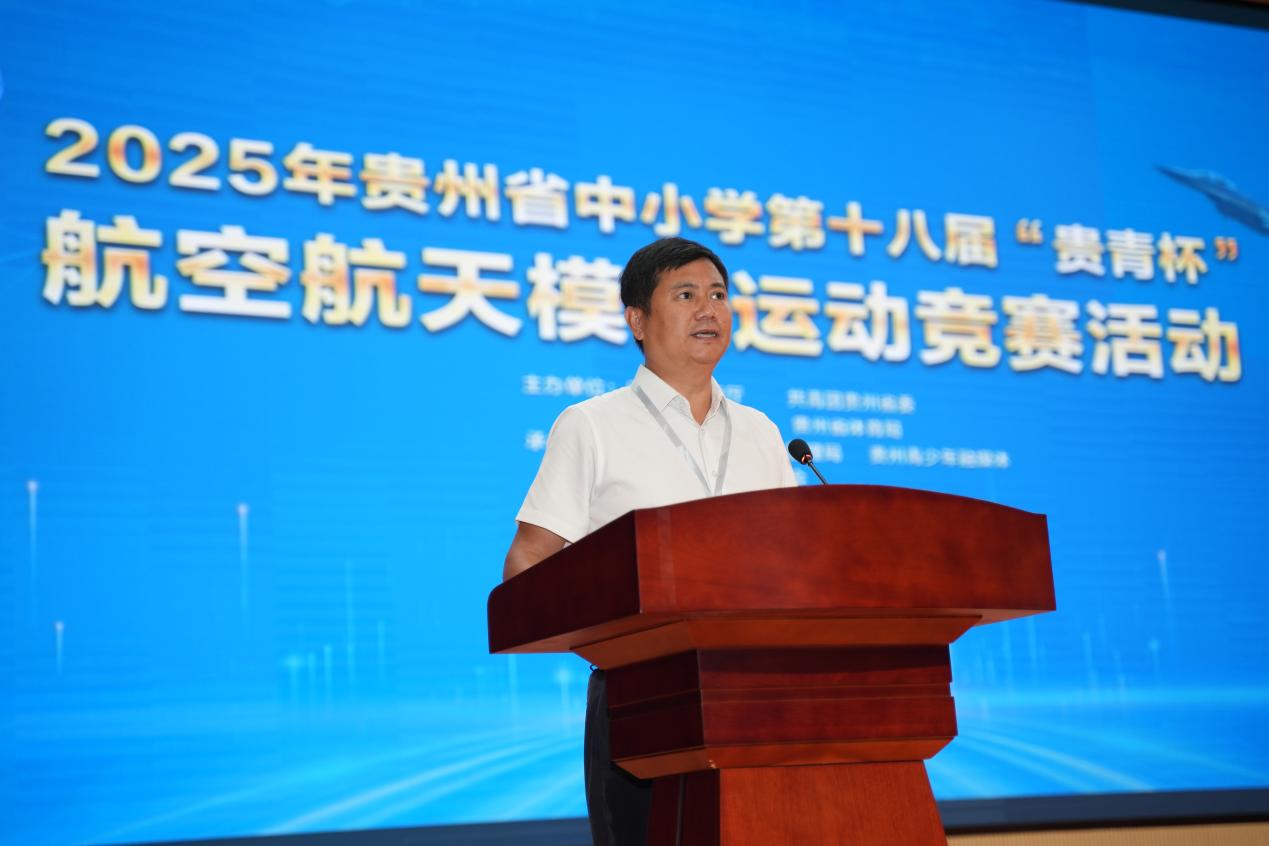 共青团贵州省委少年部副部长张淼绪宣布2025年贵州省中小学第十八届“贵青杯”航空航天模型运动竞赛活动开幕。