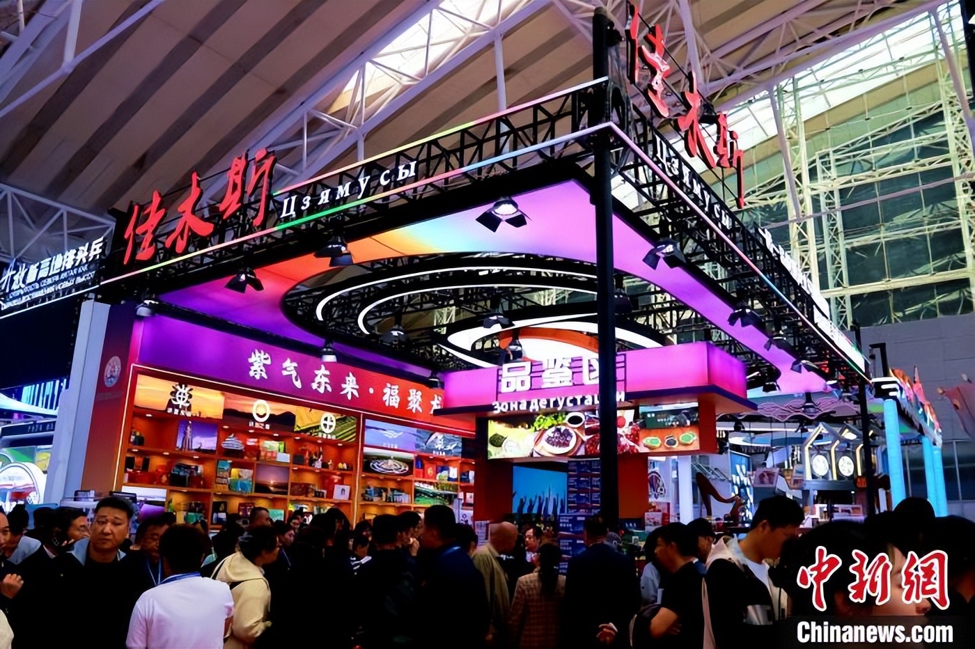 此外,获批全国名特优新农产品的“富锦狮头鹅”被切成适合一口食用的大小,紧实的口感和十足的烟熏味让食客们赞不绝口。鲟鳇鱼籽搭配蔓越莓果酱的“红黑CP”也成了新晋网红,工作人员说:“一上午试吃了百余份,已有深圳餐饮集团跟我们预定团购订单了。”