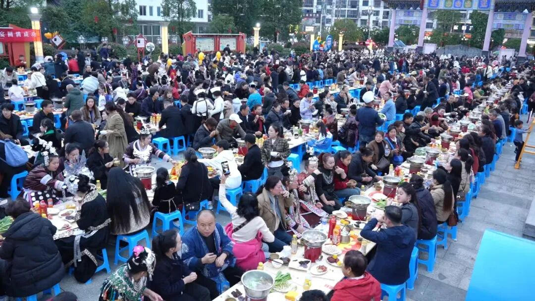 侗宴八方·百家宴——长长的宴席摆满侗家特色美食,酸汤鱼、糯米饭、腌鱼……每一口都是山与水的味道。