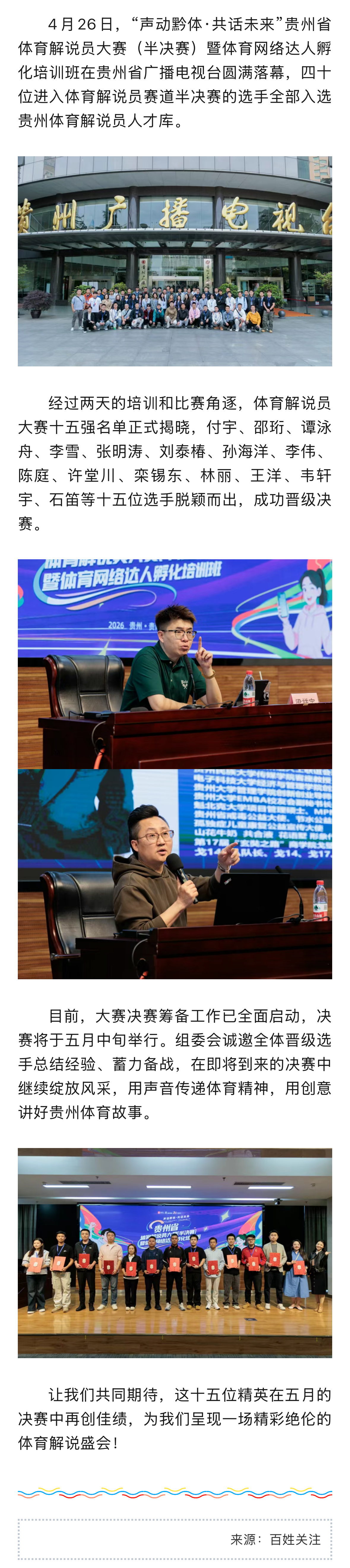 十五强出炉!2026贵州体育解说员大赛半决赛落幕,咱们五月决赛见