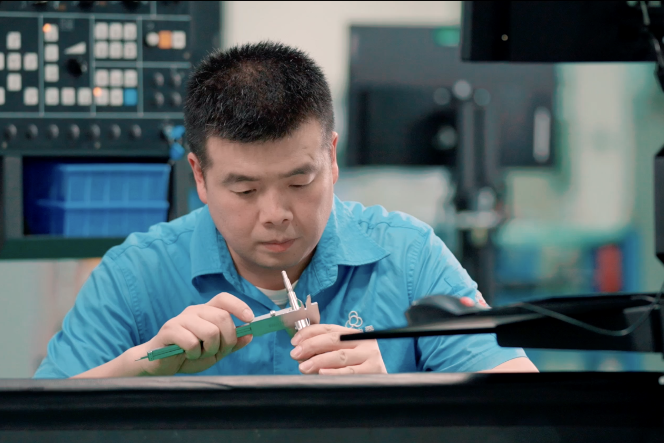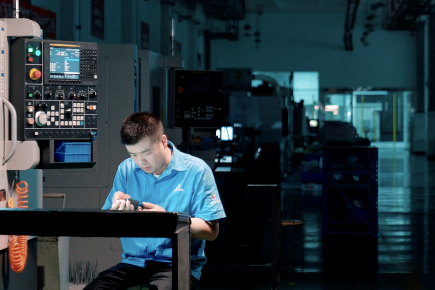 他有一套严谨的序章:为精密的数控机床通电,仔细检查润滑系统,倾听机器预热时发出的均匀嗡鸣。紧接着是早会,会后再开启工作。