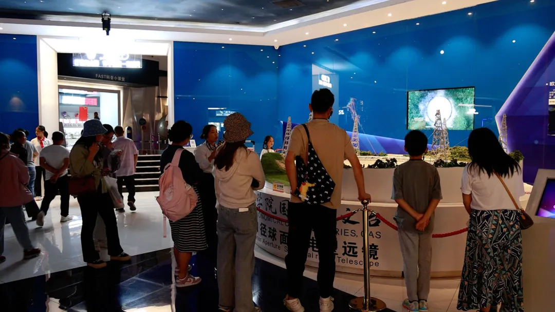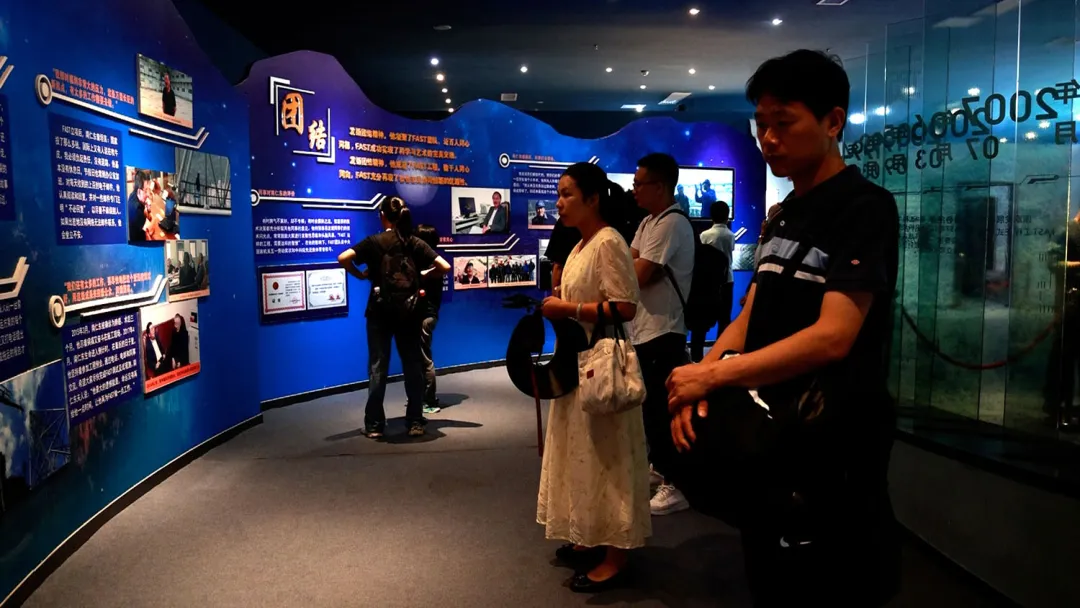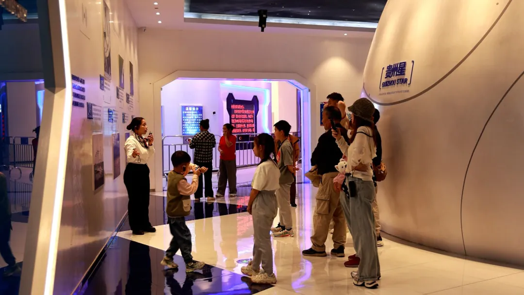 杭州游客王雯对记者说:“我们就想着趁着国庆假期带孩子过来沉浸式体验一下‘中国天眼’,探索天文的奥秘。”