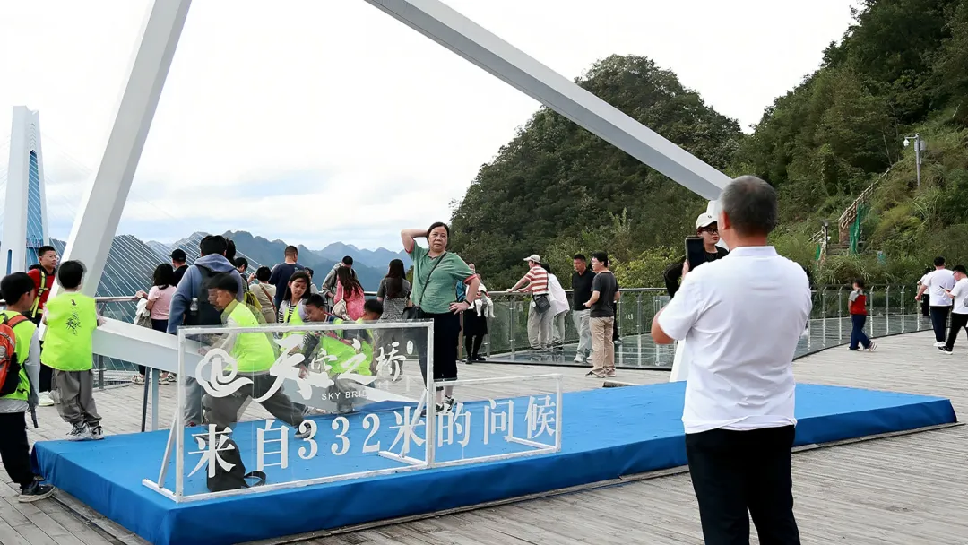 黔东南州游客刘富蓉对记者说:“之前也看过关于‘天空之桥’景区的新闻,就想趁着国庆带着小朋友来看一看,开拓一下眼界,感受中国‘基建狂魔’的魅力。”