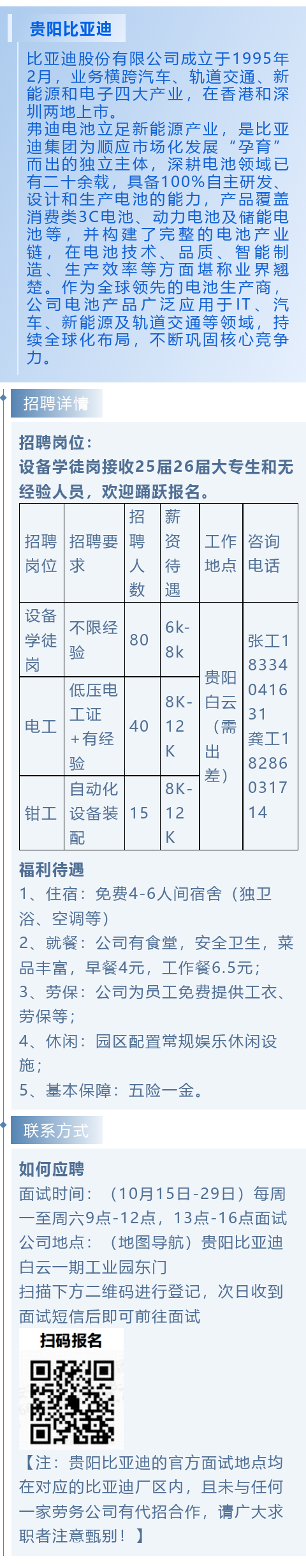 【知名企业】贵阳比亚迪招聘!月薪6000~12000元!五险一金!免费住宿!