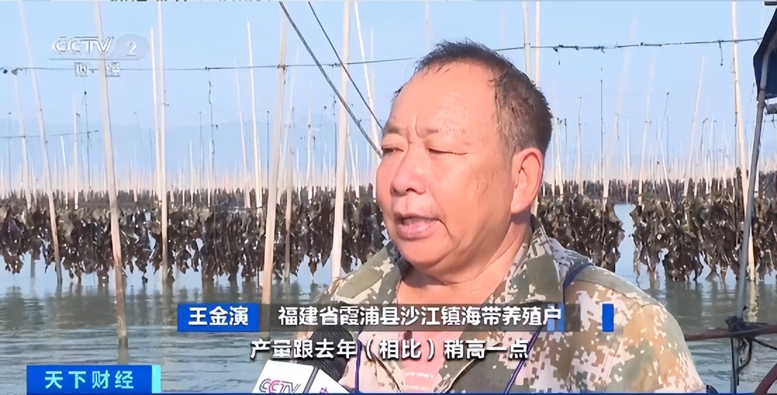 福建省霞浦县沙江镇海带养殖户 王金演:我今年养了6亩海带,产量跟去年相比稍高一点。