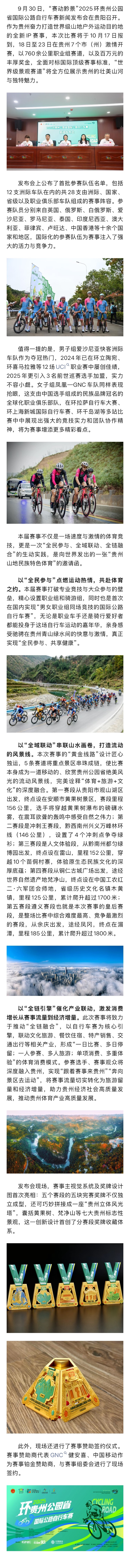 一路黔行永经典 2025环贵州公园省国际公路自行车赛10月18日开赛