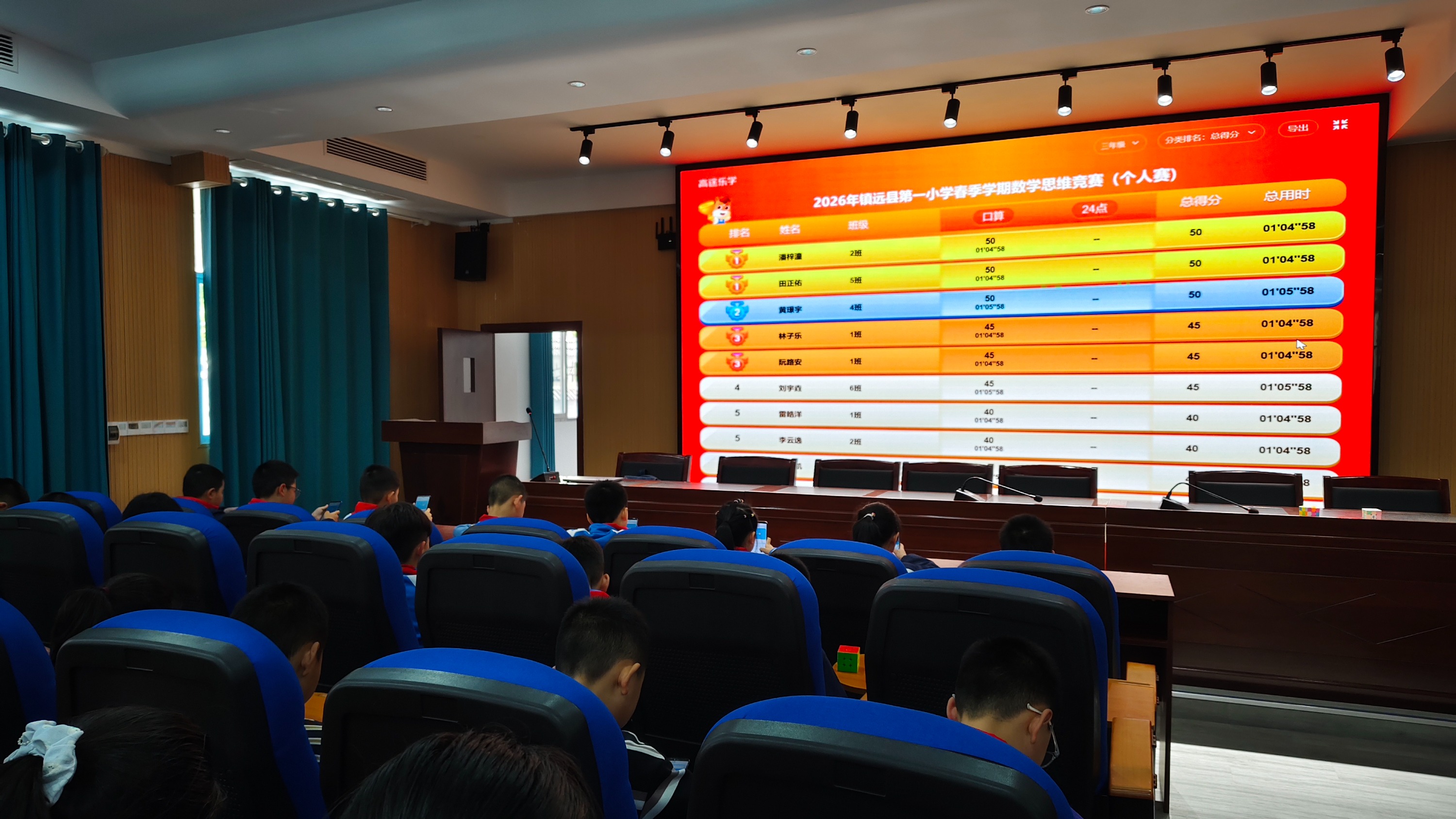 为践行新课标“以学为中心”理念,让数学学习跳出课本、走进赛场,2026年4月8日,镇远县第一小学“数趣闯关·智启未来”春季数学思维竞赛,在高年级部阶梯教室火热开赛!一至六年级的孩子们踊跃参与,在口算速算、魔方挑战、思维抢答中,解锁数学智慧密码,绽放思维活力,尽情感受数学的无穷魅力!
