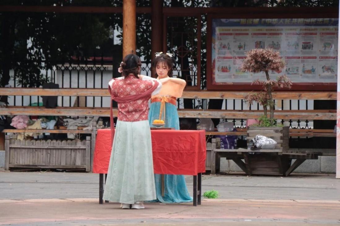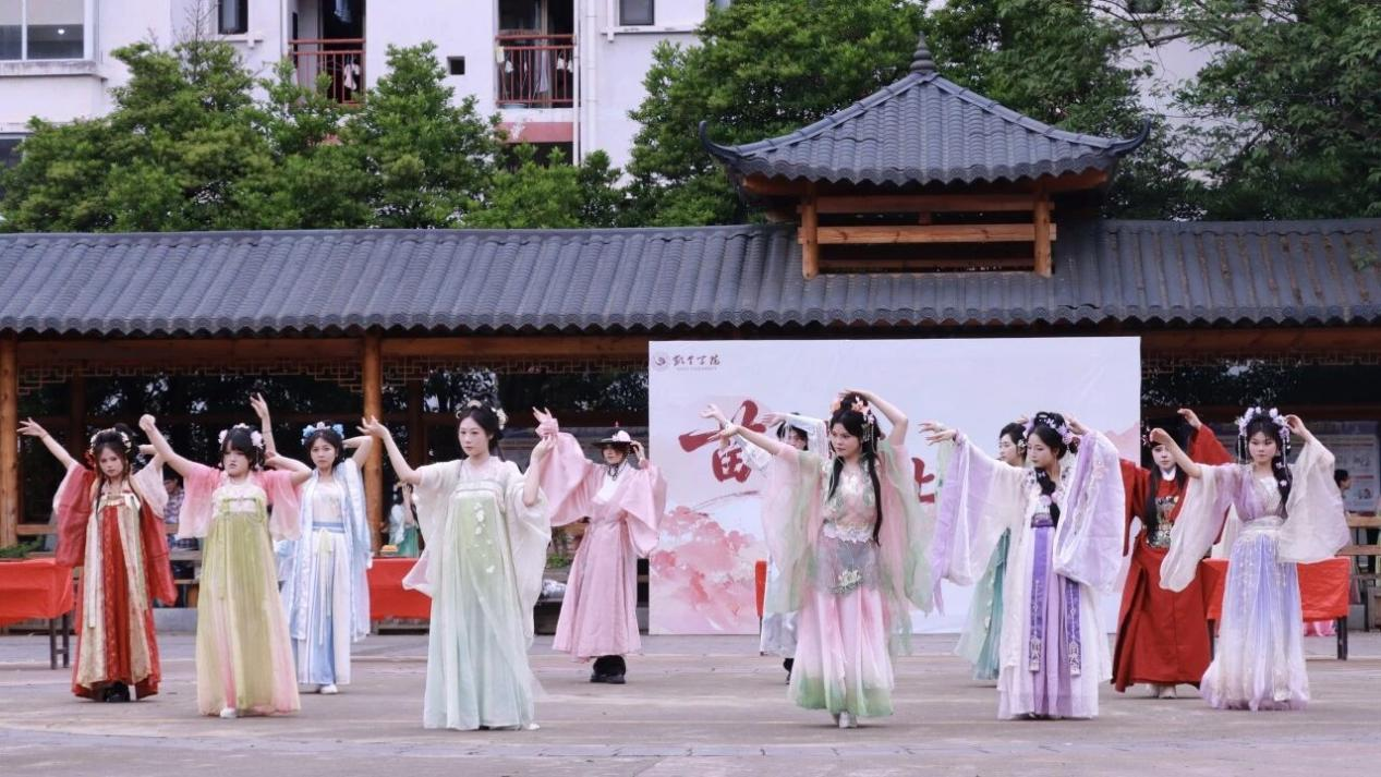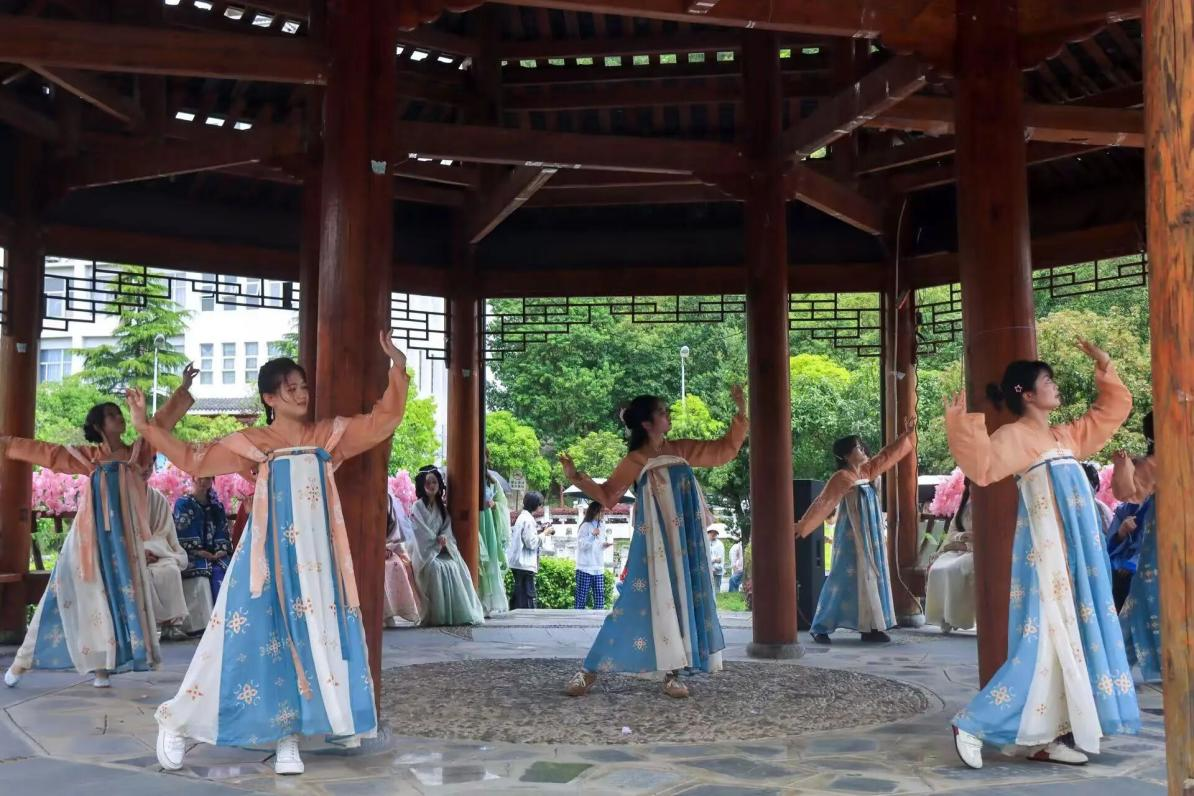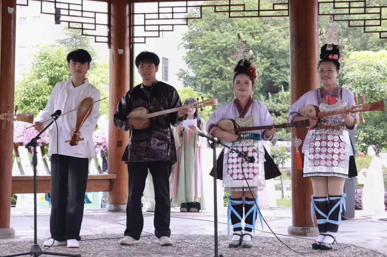 鼓楼之下,舞者轻舒广袖,翩若惊鸿,恍若梦回千年风雅。华服文化娓娓道来,歌声清越、走秀翩翩。更有侗歌演唱,原生态旋律悠扬而起,民族风情与古韵交相辉映,令在场师生沉醉其中。