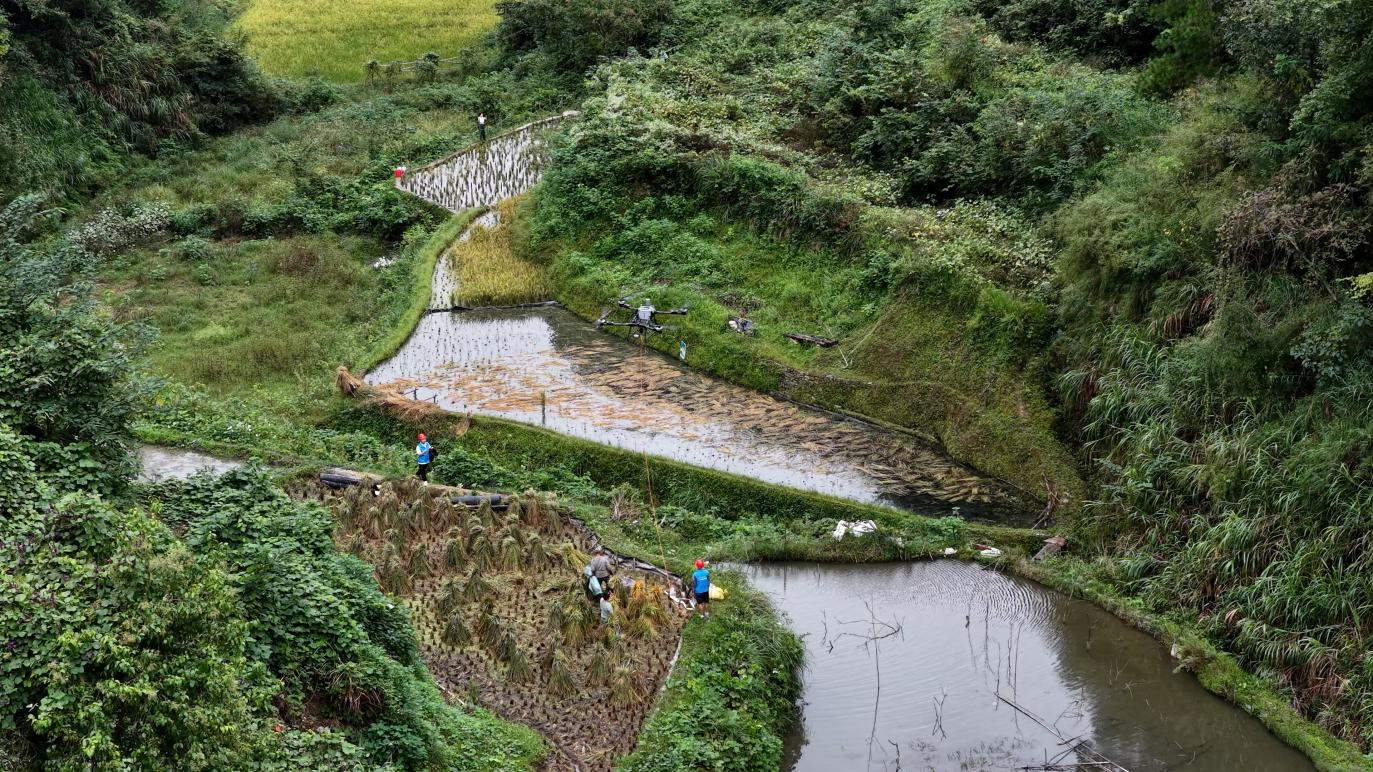 秋收时分,万金磊带领几名经过专业培训的村民组成作业小队,操控平安捐赠的大型农用无人机穿梭在稻田里,协助村民开展稻谷运输等辅助性农活。“以前几个人忙活大半天的活,用无人机一下子就能干完,既能帮老人、妇女省力气,还能为村集体带来收入。”万金磊介绍道。