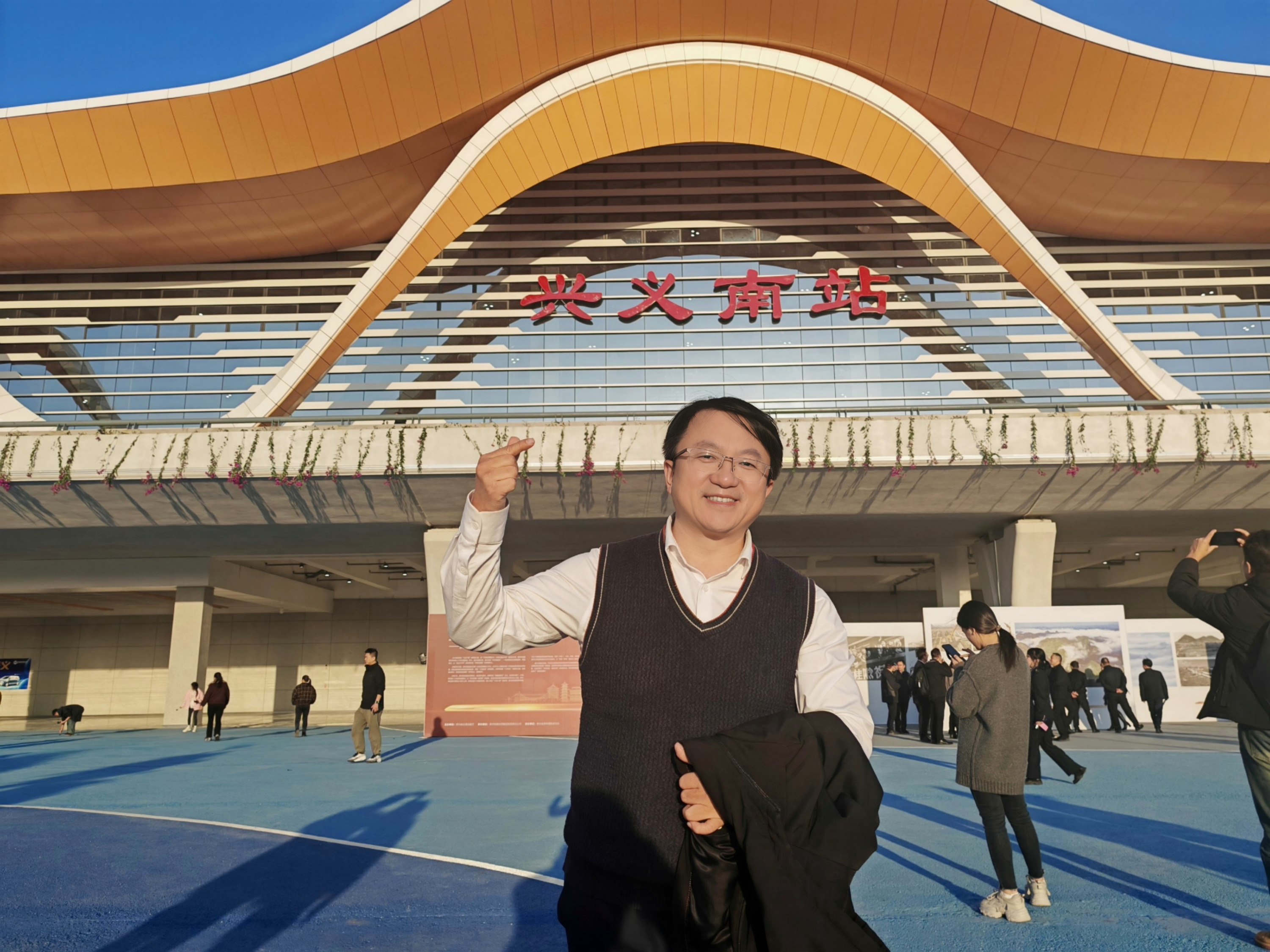 歌曲的词藻里,藏着贵州山水的灵秀与高铁飞驰的豪情。“万峰林在车窗外列队成诗行”,勾勒出喀斯特地貌的独特画卷,让每一位听者仿佛置身“中国最美乡村”纳灰村的峰林环抱之中;“复兴号迎着布依寨的月光”,将现代交通与民族风情相融,八音坐唱的古雅与汽笛回响交织,诉说着黔西南的人文底蕴。从“隧道明灭像是数星光”的旅途期盼,到“纳灰村的灯火在为我等待”的温暖守候,歌词以细腻笔触串联起旅途点滴,更映照出298万黔西南人民迈入高铁时代的喜悦。