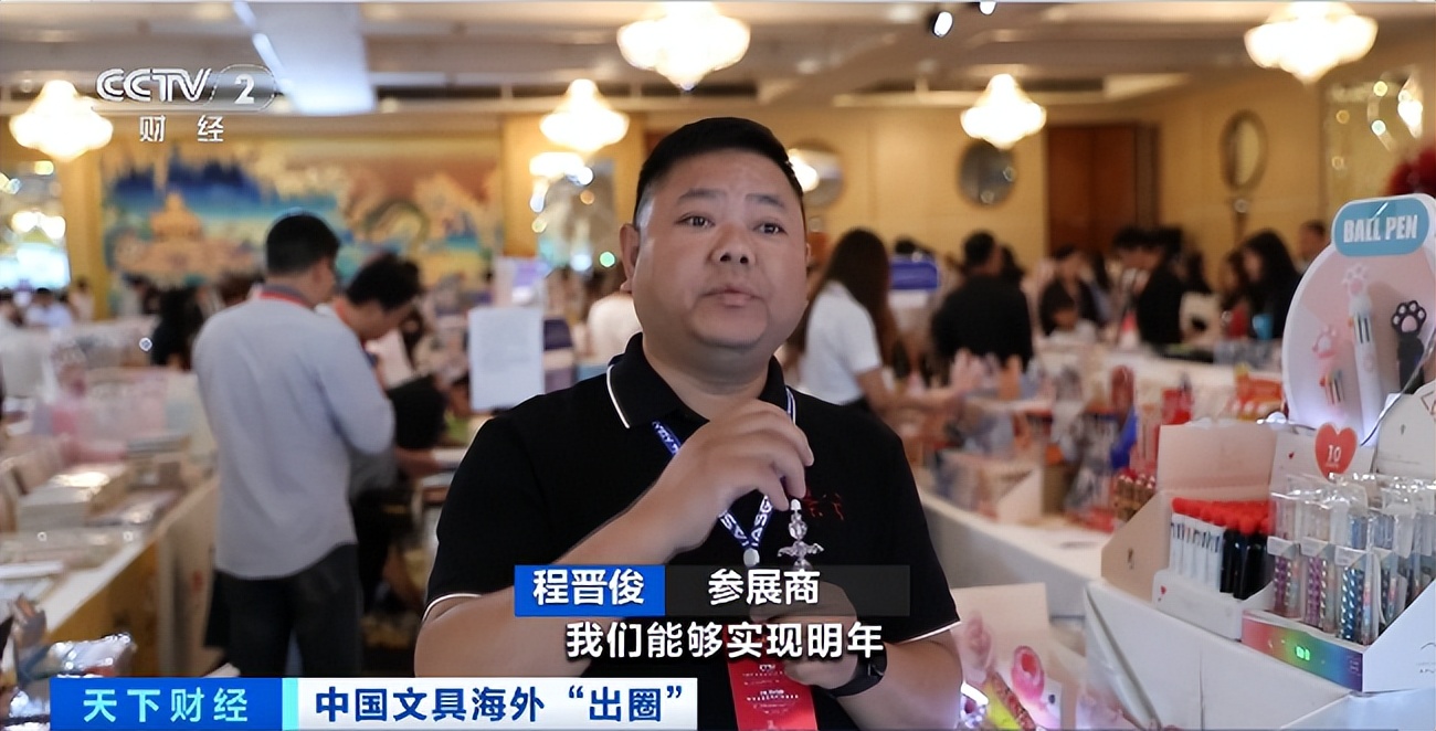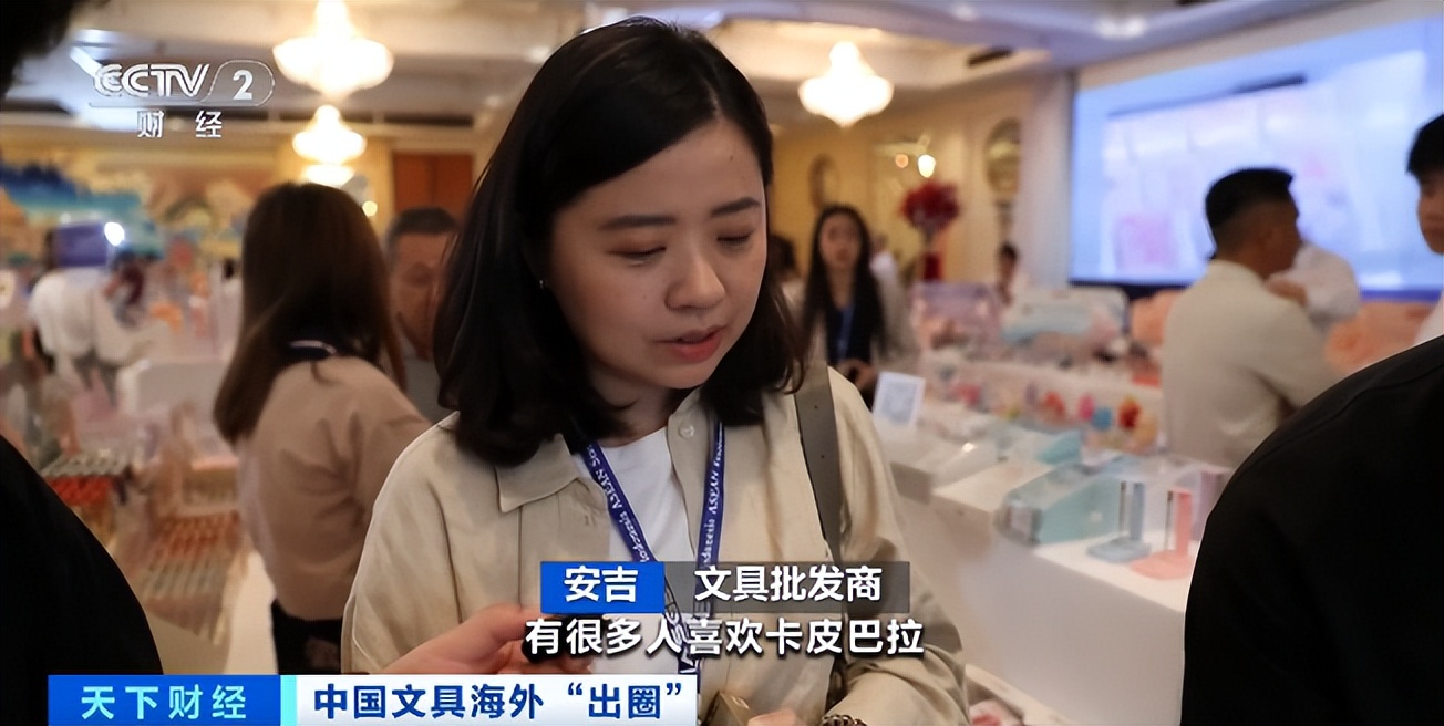近期,浙江义乌的60多家文具企业,在泰国曼谷举办了一场产品展销会。安吉是泰国的一名文具批发商,刚在展销会逛了一会儿,就被不少IP文具产品吸引。他与参展商交谈后,挑选了5个样品,打算带回公司做市场测试。