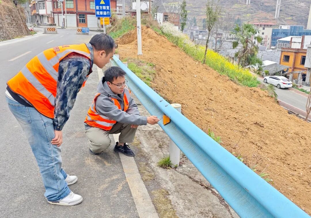 以提升道路安全防护能力为核心,全面排查完善沿线交通安全设施。对标志标线、护栏、警示桩、防撞设施等进行逐一检修、补齐、刷新。针对车流人流增大的特点,优化交通标识设置,修复波形护栏362米,混凝土路肩墙、边沟、挡土墙109.07立方米,标志标牌55块。确保所有交安设施完好有效、指引清晰,充分发挥安全防护与通行引导作用,为前往百里杜鹃的游客提供全方位安全保障,筑牢道路交通安全防线。