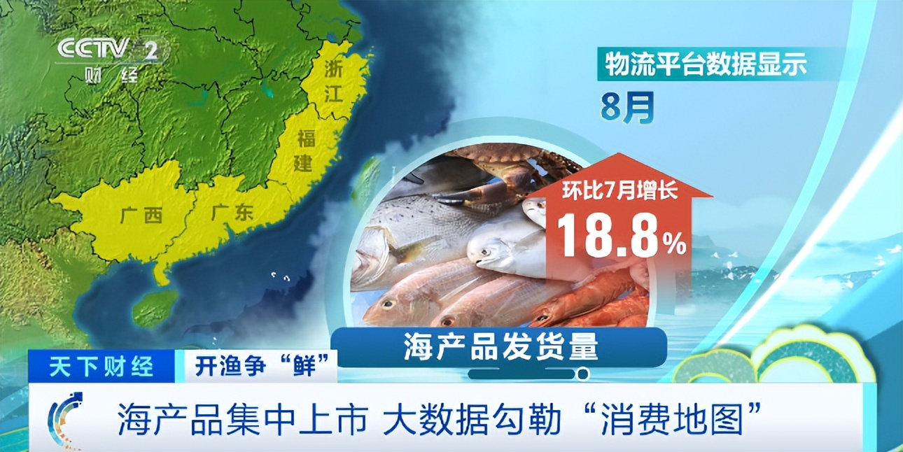 物流平台数据显示,8月,广东、广西、福建、浙江四个省份的海产品发货量环比7月增长18.8%。其中,8月19日以来,平台上四个省份的海产品运输量开始激增,发货量排名前四的海产品分别是生蚝、冰鲜鱼、活鱼和贝壳,物流订单多以省内短途订单为主。各大海域伏季休渔期结束后,沿海地区的海鲜爱好者们尝到了“第一口鲜”。