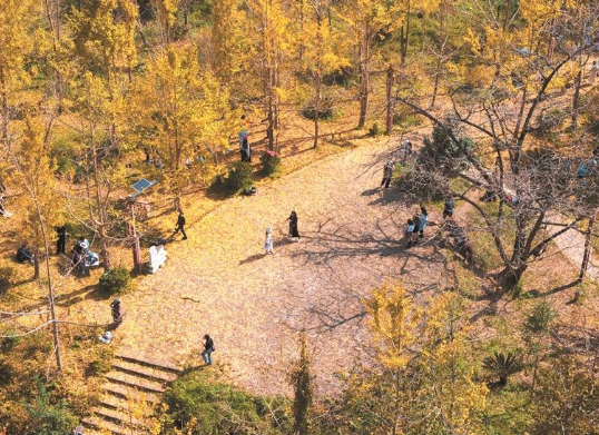 银杏叶黄 游人如织