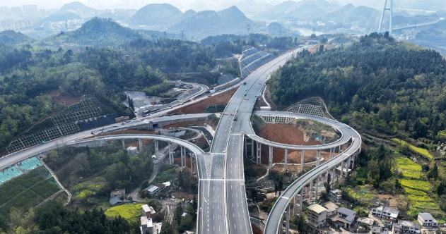 贵安扩容项目还有另一个特点,它是贵阳向地市的首条无隧道高速,项目路桥比仅29.3%,通车后,将大幅缓解既有G60沪昆高速贵阳至安顺通行压力。