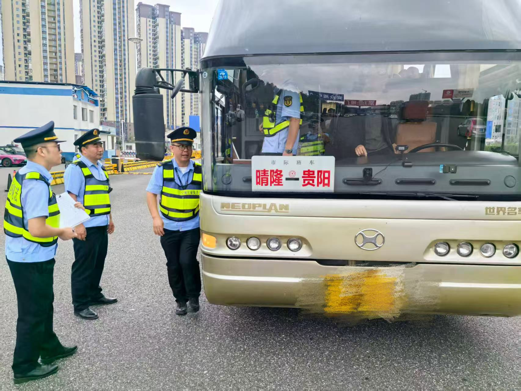 针对节日旅游高峰,云岩区大队延伸执法触角,对辖区内如黔灵湖等文旅相关企业进行执法检查,关注其使用的运输游船安全状况及运营规范性。此外,大队还重点加强了金阳车站老客车站延伸服务点、延安西路旅游集散中心等旅客集散地的监管。执法人员详细检查了服务点落实“三不进站、六不出站”、实名制售票查验、车辆安全例检等制度的情况,并积极协助维护站场秩序。对在集散中心周边停留候客、影响交通的车辆进行耐心劝离,有效疏导了交通,保障了旅游客运市场的规范有序。