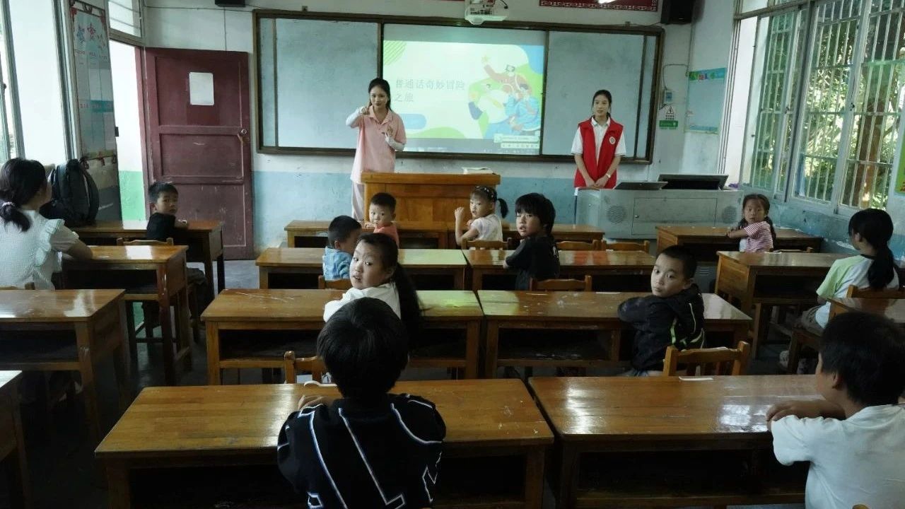 这次给儿童们上推普课时,我被他们眼里的求知欲打动了。在我教绕口令时,他们会悄悄跟着念,也会用方言小声交流想法,又努力用普通话回应我,眼里充满了动人光芒,这些都将成为我成长道路上珍贵的回忆。未来,我会带着这份收获继续前行,更积极地成为推普行动的践行者。