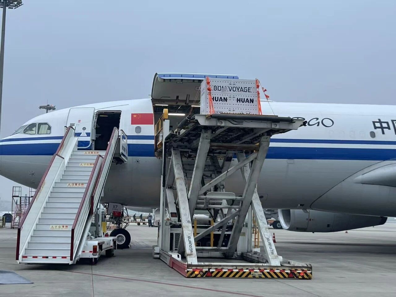 旅法大熊猫“欢欢”“圆仔”平安回国