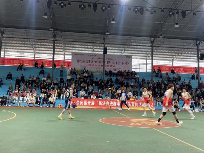 为增强普法宣传的趣味性和实效性,余庆县将民法典宣传融入到各类特色赛事活动中。在龙溪镇“坝坝篮球赛”比赛现场,设置了民法典宣传展位,工作人员向参赛选手和观赛群众发放民法典宣传手册、宣传纪念品等宣传资料,并在比赛间隙开展民法典知识问答活动,现场观众积极参与,气氛热烈。通过将民法典宣传与赛事活动相结合,让群众在享受体育赛事乐趣的同时,潜移默化地学习民法典知识,实现了“法治+赛事”的双效收获,受到了广大群众的一致好评。群众纷纷表示,这种活动既可以看球赛又可以学习法律知识,还有奖品可以拿,希望以后多多开展。
