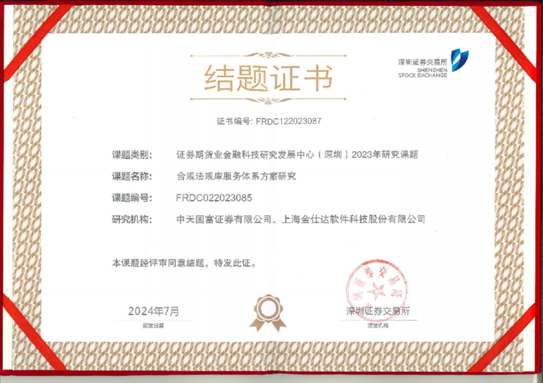 ◎中天国富证券《合规法规库服务体系研究》课题在深交所结题,并获证书