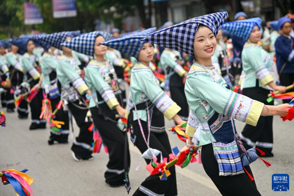4月19日,贵州省黔西南布依族苗族自治州望谟县举行“三月三”民族文化活动,人们欢聚一堂,共庆传统佳节。新华社发(袁福洪摄)