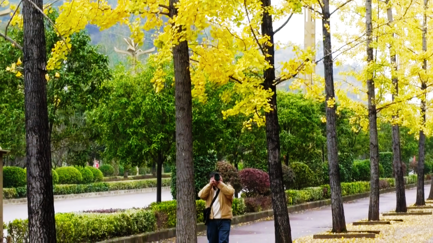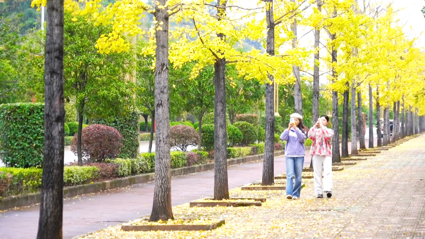 近日,贵州省黔东南苗族侗族自治州黄平县旧州古镇的银杏进入最佳观赏期,吸引众多市民和游客前来打卡。