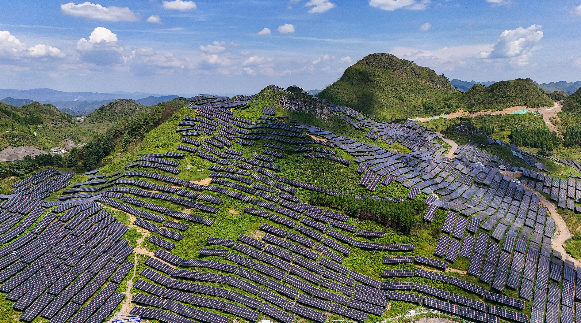崇山峻岭间,一排排光伏矩阵倾泻而下