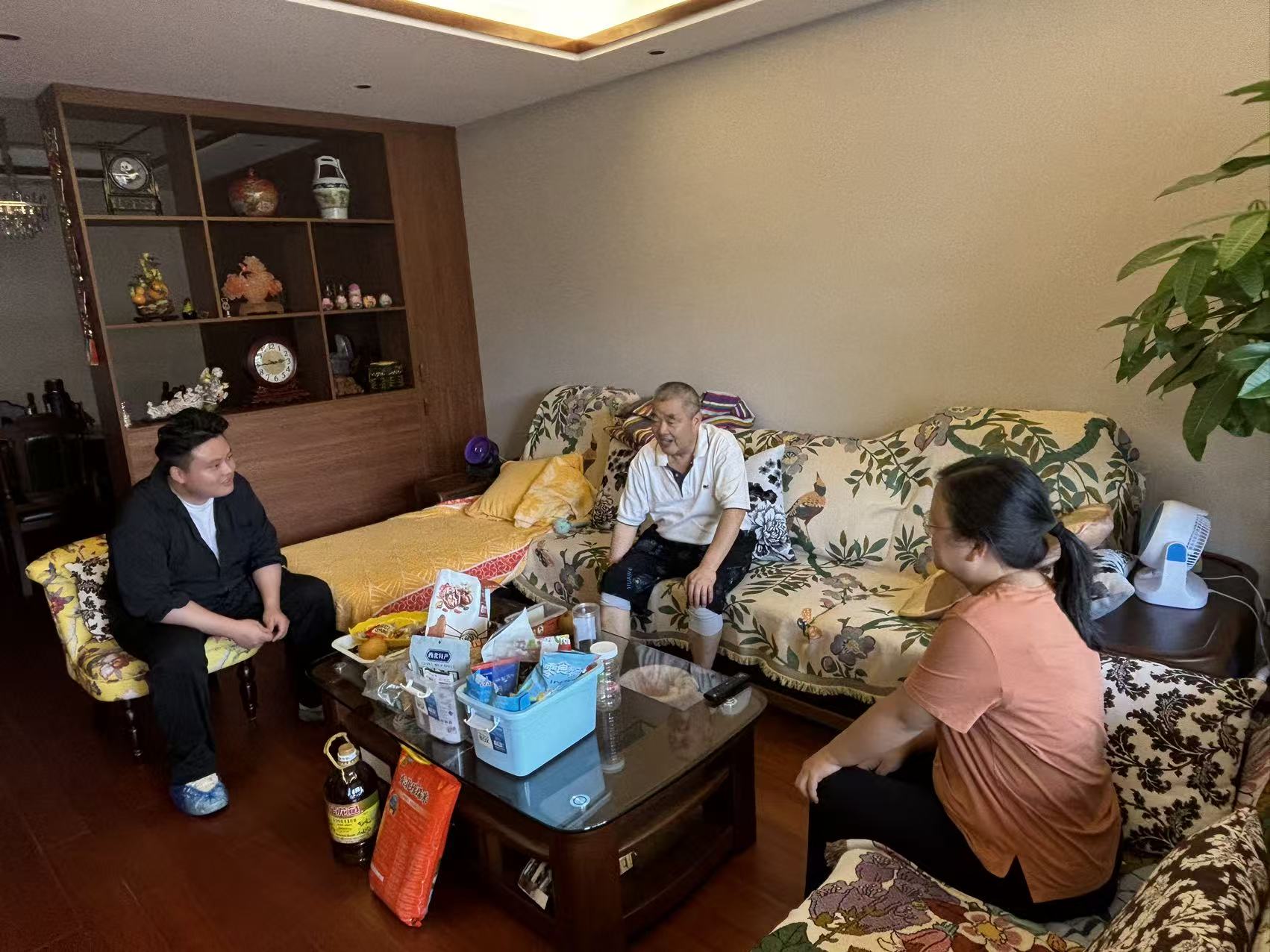 慰问组首先来到自主择业干部吴平黔家中。慰问人员为其送上慰问品,详细询问他的身体状况和生活近况。吴平黔表示,目前身体状态良好,感谢区退役军人事务局一直以来的牵挂与关怀,现场气氛轻松融洽,双方围坐一起拉家常、忆往昔,传递着浓浓的组织温情。