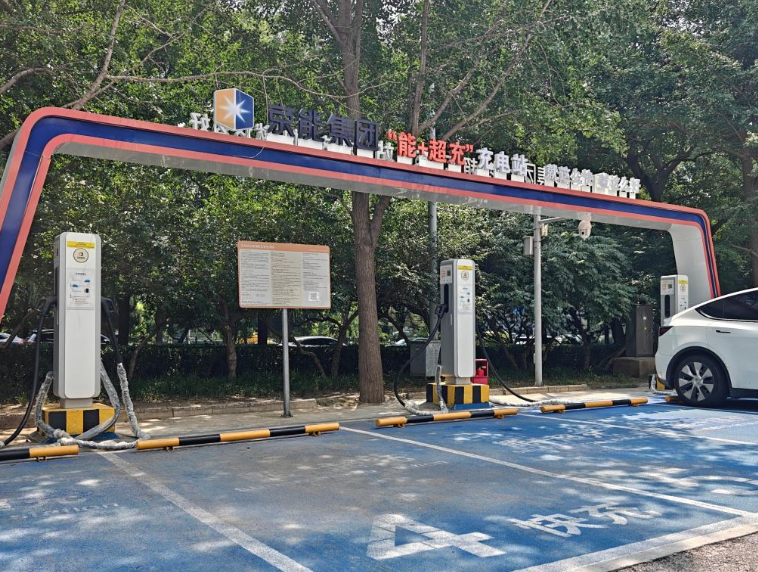 在北京市阜成门,京能集团旗下“能+超充”充电站装配着2个功率为600千瓦的超充桩和8个功率为250千瓦的快充桩,为新能源车辆提供快捷的大功率充电服务。