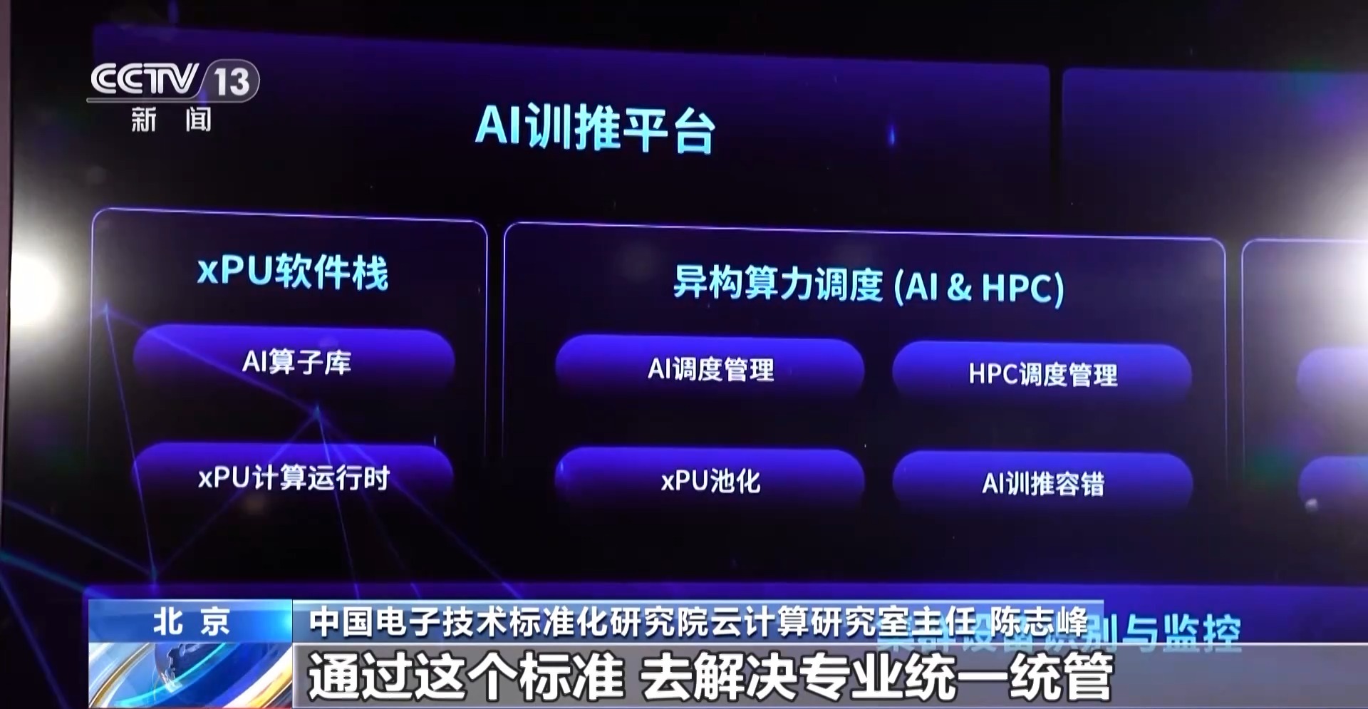 中国电子技术标准化研究院云计算研究室主任 陈志峰:目前训练和推理是人工智能比较大的一个场景,特别是他们在统一协调使用的时候。通过这个标准,去解决专业统一统管,提高资源利用率。