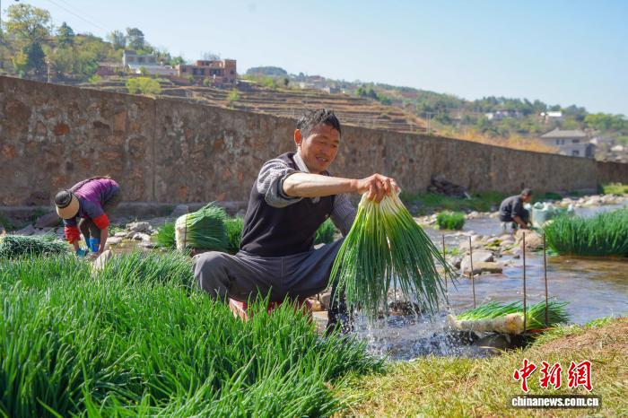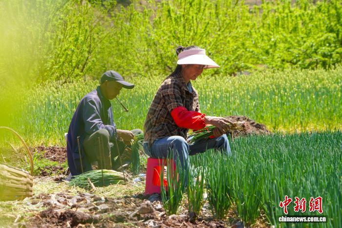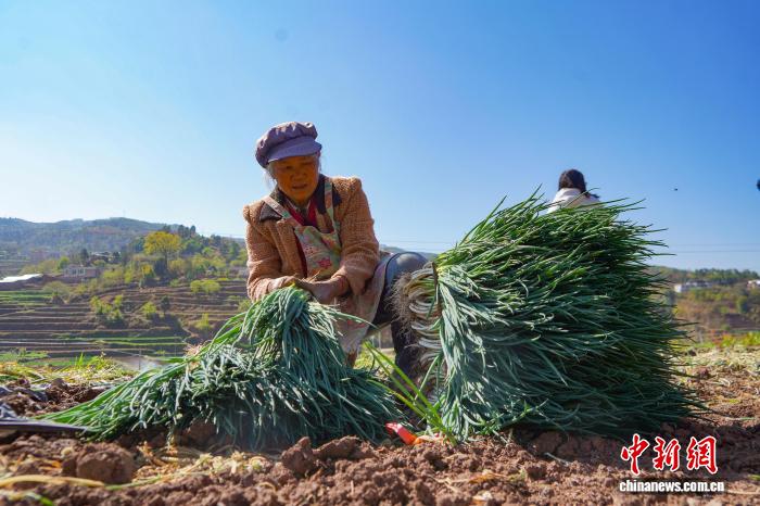 近年来,贵州省毕节市威宁彝族回族苗族自治县依托自然资源禀赋,在高原河谷地区深入推进“冬闲不闲”行动,让“冬闲地”变“增收田”,2025年冬季谋划引导群众种植小葱、蚕豆、蒜苔等蔬菜5000余亩,现在全面进入采收期,成为支撑当地群众持续增收的支柱产业之一。