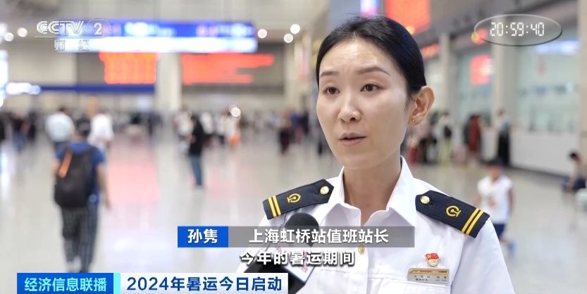 上海虹桥站值班站长 孙隽:今年暑运期间,我们铁路上海站在实施高峰运行图的基础上,还将增开洛阳、郑州、青岛、乌鲁木齐方向的列车五对。同时我们车站药箱也备足了一些夏日常用的药品。