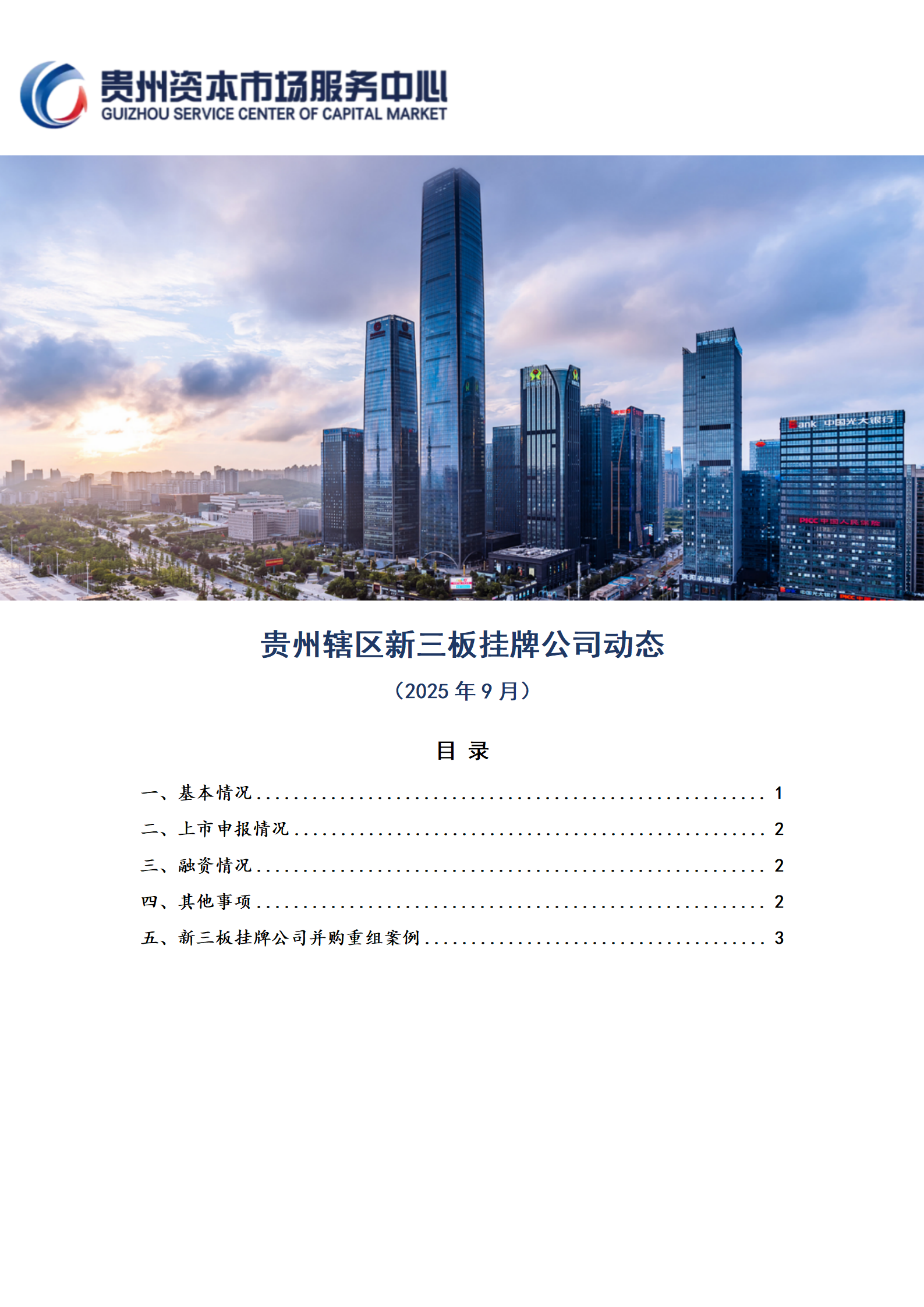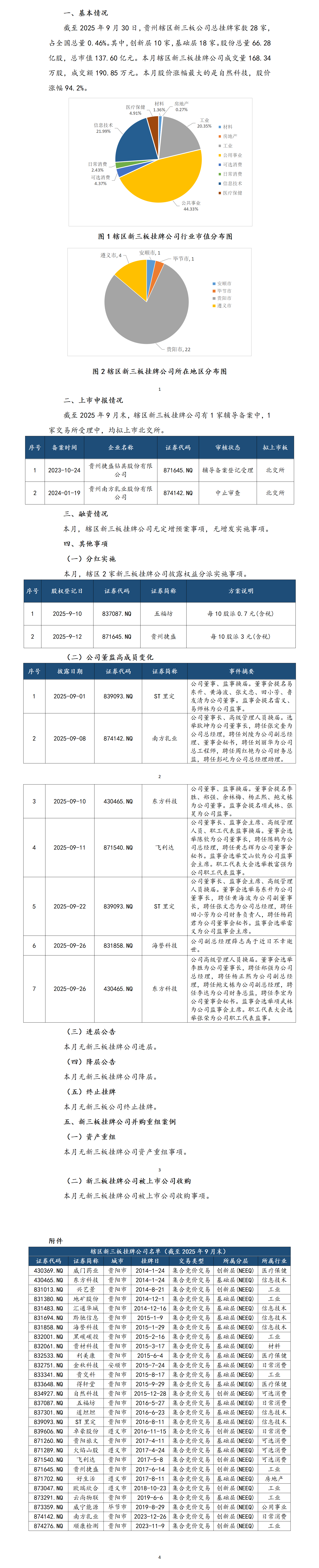 黔证资讯丨贵州资本市场月报:贵州辖区新三板挂牌公司动态(2025年9月)
