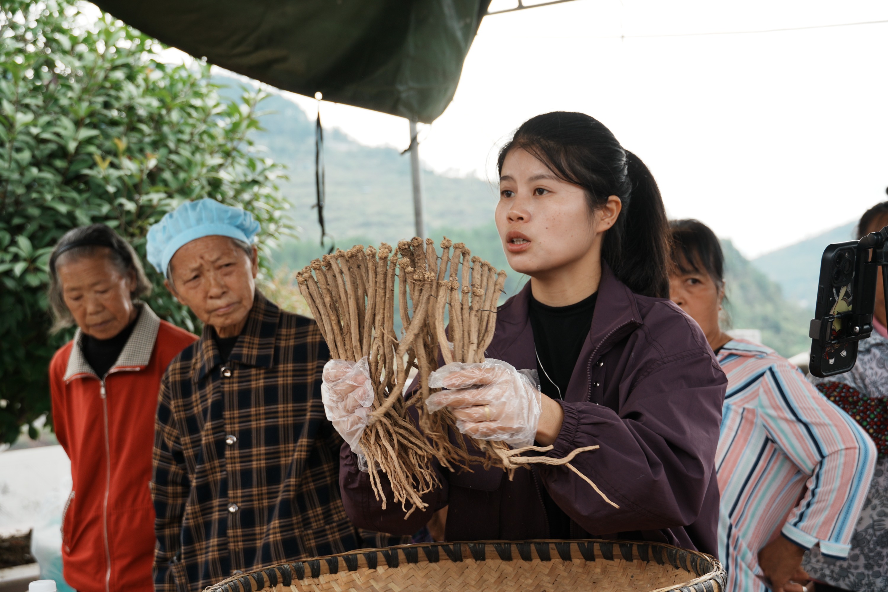 “家人们快看这野生羊肚菌,色泽鲜亮、大小匀称,不管是蒸着吃还是炒着吃,那味道都香得很呐!”在第四场直播中,陈玉兰身着朴素衣装,用朴实的贵州方言与客家方言亲切地介绍着产品。与此同时,村民们也相继在镜头前现场展示红薯粉制作、花生剥壳等过程,真实的场景、真挚的态度深深打动了不少网友。直播间里,网友们纷纷留言下单,订单量不断攀升,不到5小时,这场直播的销售额就突破了33万元。
