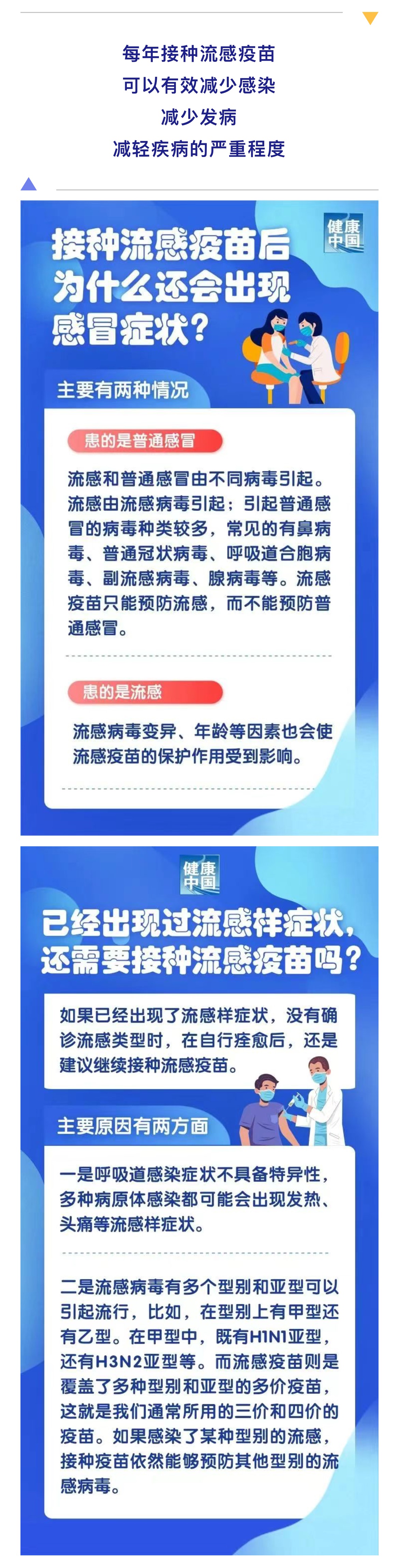 动静健康 | 接种流感疫苗后,为什么还会感冒?已经出现过流感样症状,还需要接种流感疫苗吗?